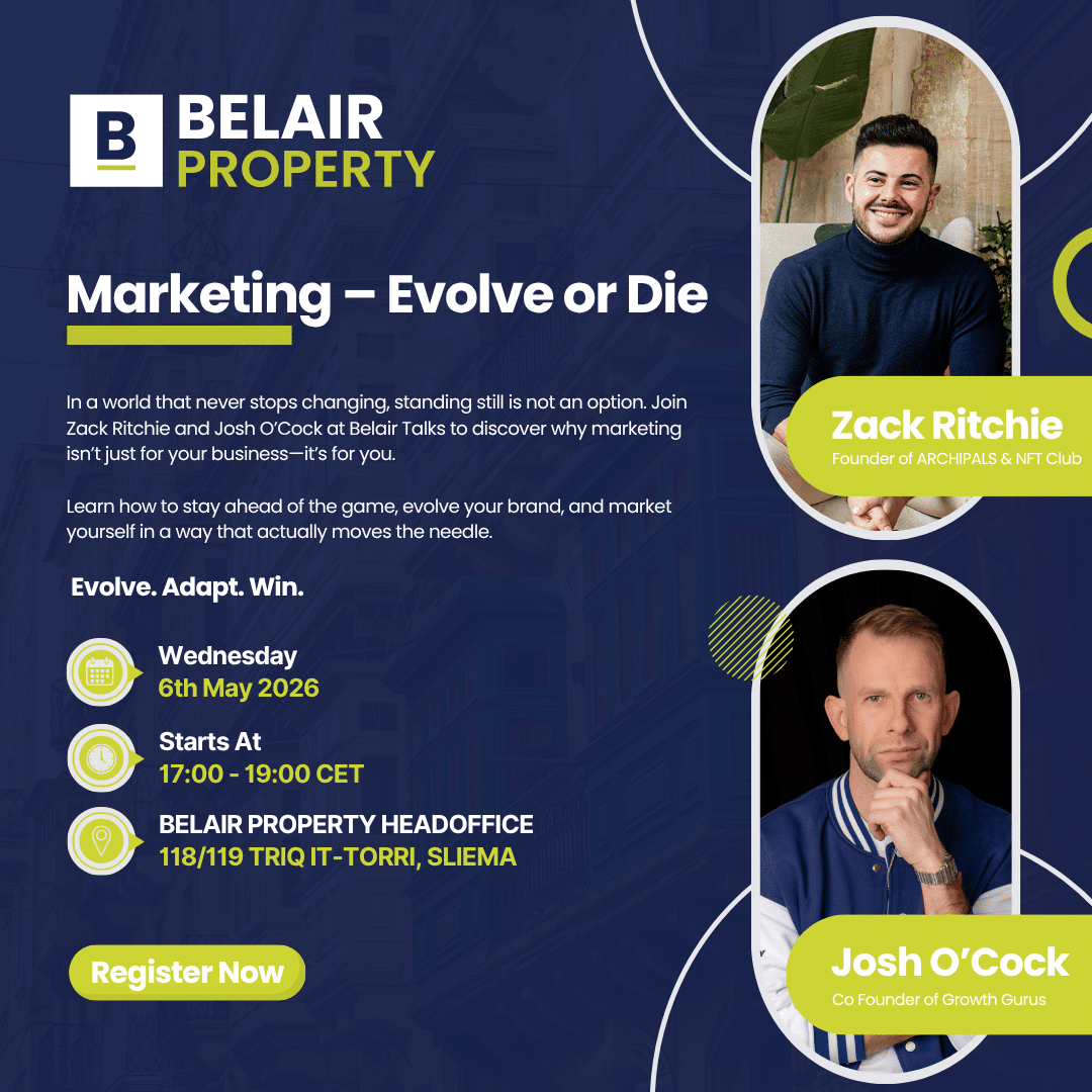 At Belair, we’re more than just a real estate agency. We’re a dynamic community of visionaries, innovators and achievers. Here, passion meets purpose, join us as we collate industry experts and thought leaders to share their knowledge with you at our HQ in Sliema through Belair Talks.
