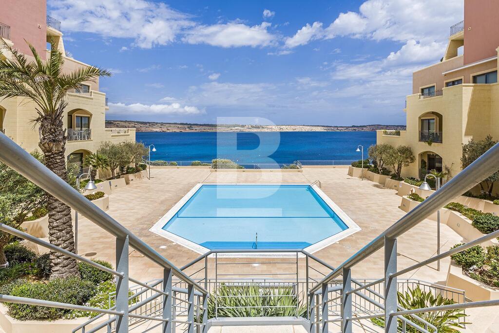 This tranquil, commanding position is complimented by outstanding features which include superb views of Mellieha bay (sandy beach), low density development, sensitive landscaping, totally car free zone (all vehicle circulation is underground), individual underlying lock up garages, communal swimming pools, easy access to the foreshore and proximity to sandy beaches.