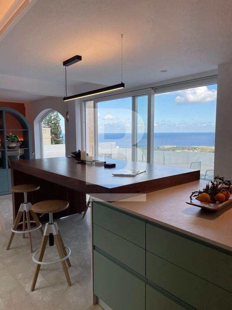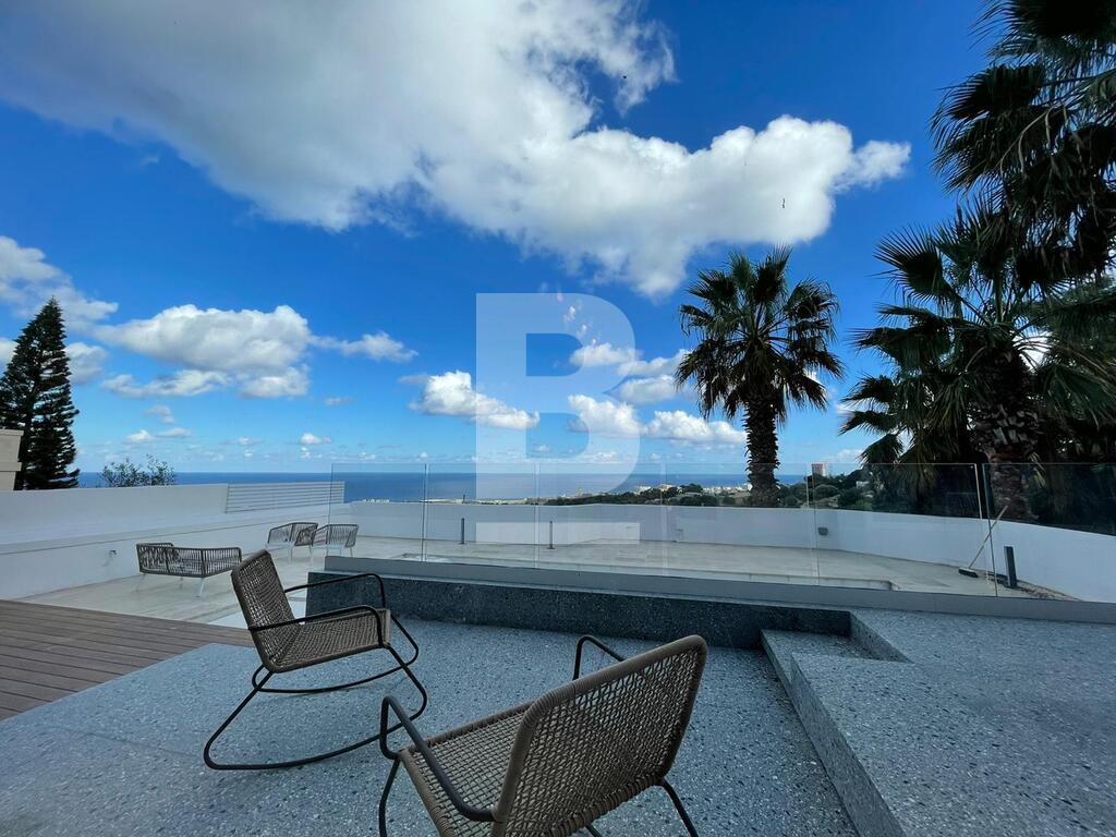 Situated in a prime residential area, this secluded and tastefully decorated detached villa includes surrounding mature gardens, private swimming pool and ample terraces and outdoor area. Accommodation comprises entrance hall, large sitting/dining room with terraces enjoying fantastic sea/panoramic views, cloakroom, and fully fitted kitchen/b`fast room. Upper floor comprises 4 bedrooms (main en suite and with terrace views), 2 bathrooms. Pool area includes sun deck, barbeque area and fantastic views. Property is fully furnished and air-conditioned. Garage and carport.