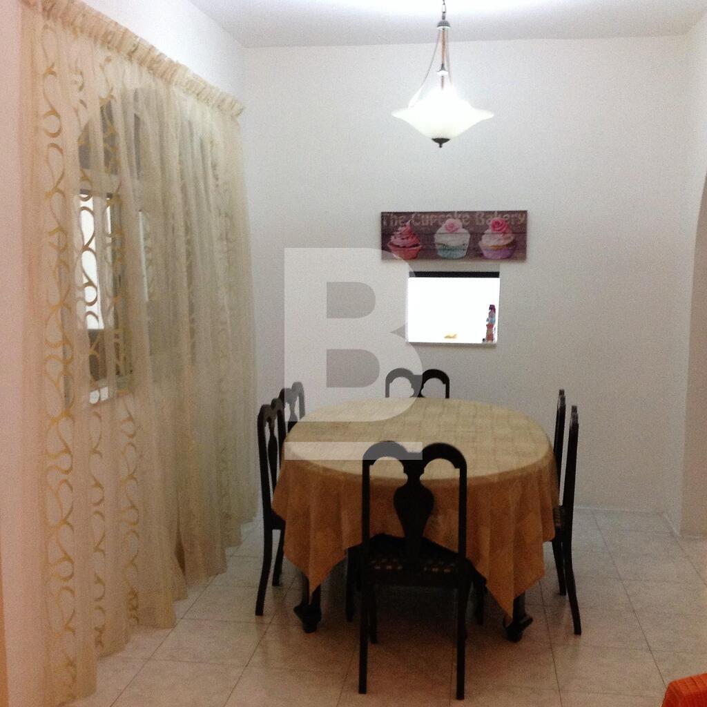 A brand new fully equipped and furnished 1st floor maisonette comprising hall, large sitting/dining room with balcony, internal yard, kitchen/b`fast fully fitted with microwave, 3 bedrooms (main with en-suite), spare bathroom, back balcony and car space below. Includes TV and washing machine.