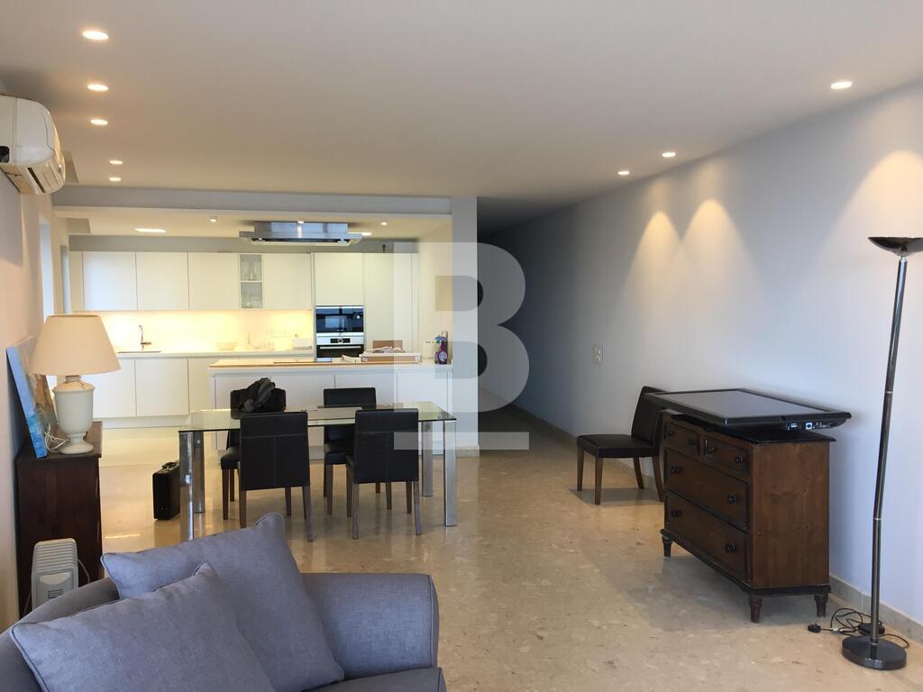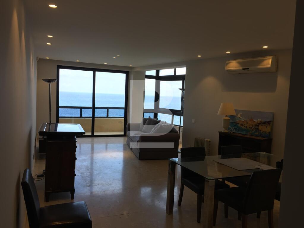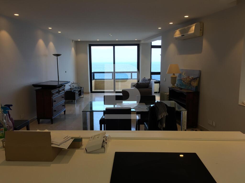 A well positioned corner 4th floor seafront apartment comprising of an entrance hall, seperate fully fitted kitchen/b`fast room with dishwasher and balcony with views, spacious open plan sitting/dining room with a terrace and side balcony enjoying fantastic open seaviews, a boxroom, a washroom with washing machine and dryer, 3 bedrooms (main with bath en-suite and balcony) and spare bathroom. Property Includes air-conditioning, TV, internet and all amenities.
