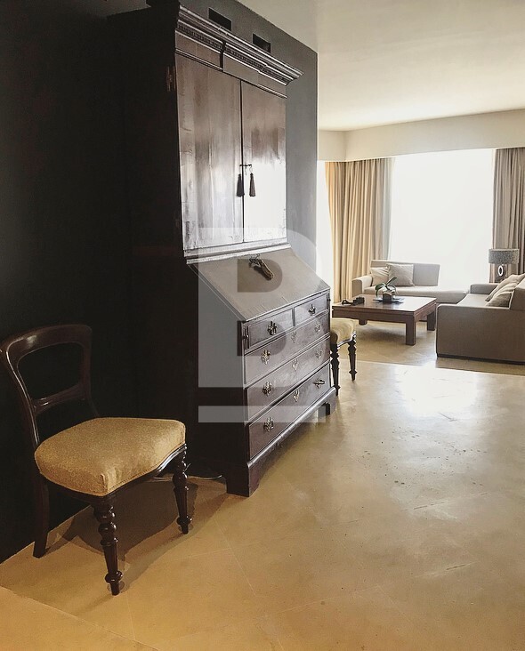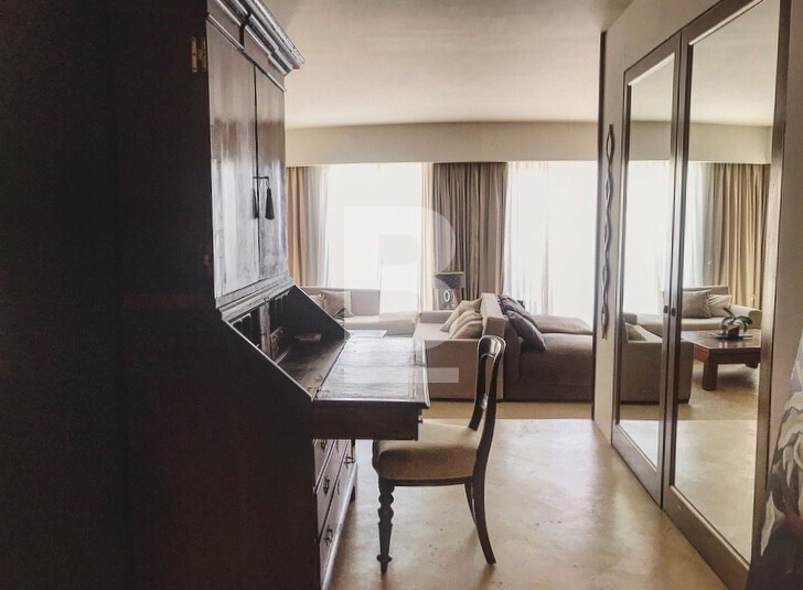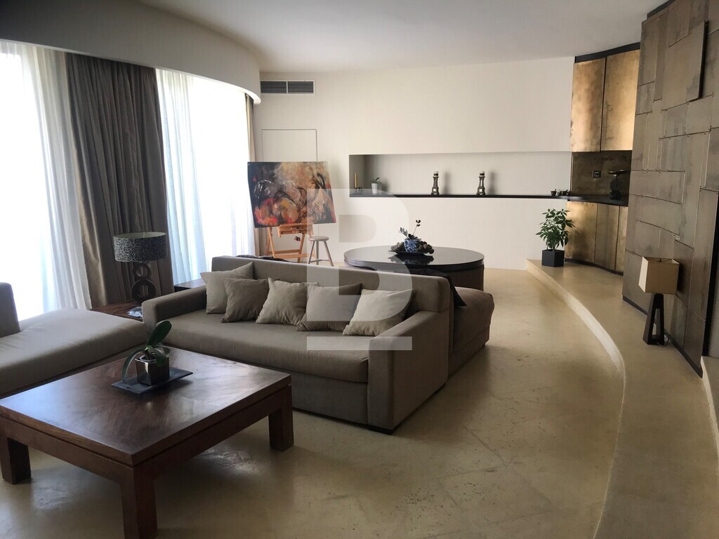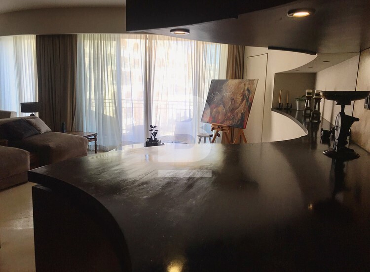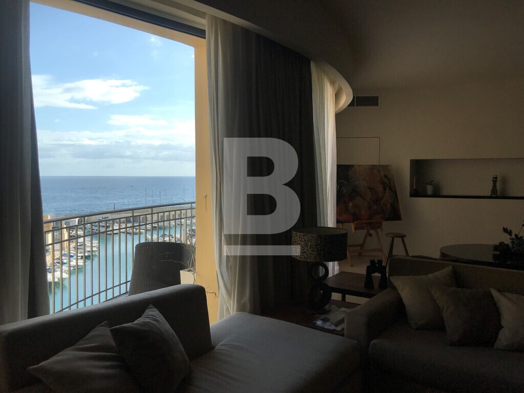 An exceptionally well finished and exquisitely furnished 8th floor seafront apartment situated over the marina in this prestigious and luxurious development. Accommodation comprises hall, split level sitting/dining open plan leading onto lovely modern terrace overlooking the yacht marina and open seaviews, unique beautifully designed steel round kitchen with all appliances, step upto luxury double bedroom with bath/shower en suite. Bedroom can be opened onto living area and views. Property is fully equipped with luxury fittings, antique pieces and lavish fabrics. Fully air-conditioned and also has an optional car space and use of pool and beach club.