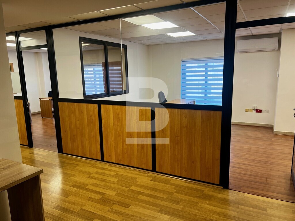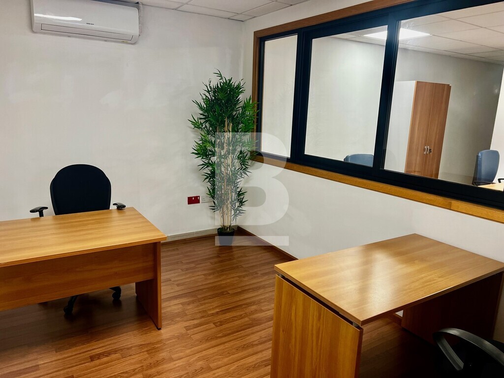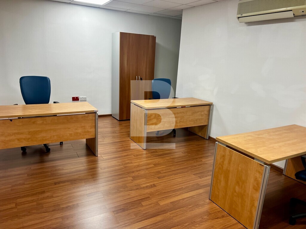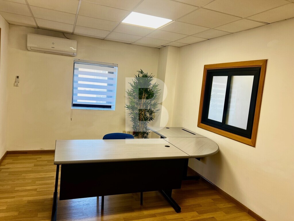 A smart corner office block in a prominent central area which presently houses a good selection of established companies. This bright and attractive office space situated on the 3rd floor and consisting of 5 seperate rooms which may be opened up into one large space or split further as required, entrance/reception area, toilet, kitchenette and 2 balconies. Total area of approximately 185 square metres. Property is bright, air conditioned and finished to a good standard. Served by lift.