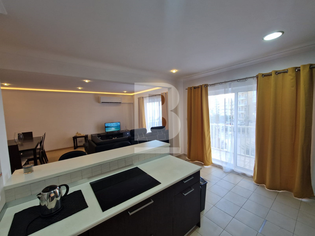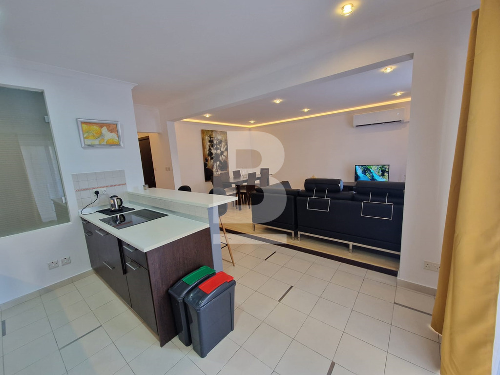 A stylish and bright newly refurbished seafront apartment comprising entrance hall, modern kitchen/dining/living room with lovely seaviews, spacious front terrace, 2 double bedrooms, 2 bathrooms and a well sized back yard. Ideal for BBQs. Apartment includes TV, telephone, washing machine and dishwasher. Optional air conditioning.