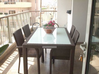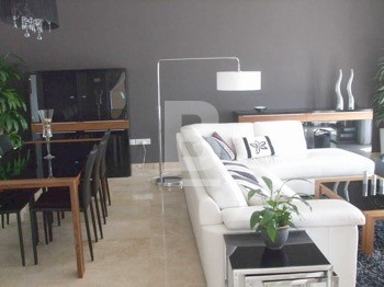 A modern and highly finished seafront apartment situated within this prestigious development which enjoys lovely communal gardens and use of communal pool. Accommodation consists of entrance hall, open plan living / dining area enjoying lovely views of Manoel island and Sliema creek, fully fitted kitchen / breakfast area which leads onto a spacious terrace with outdoor dining and lovely views, 3 bedrooms (main with en-suite facilities), bathroom, laundry room and underlying car space. Apartment is fully equipped with air-conditioning units and includes Plasma television, surround system, DVD, washing machine, tumble dryer, microwave, dishwasher, intercom and lift.