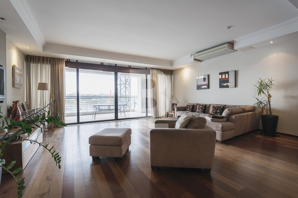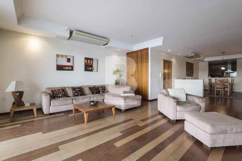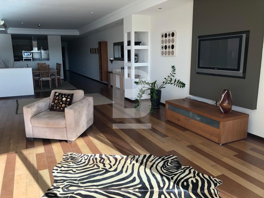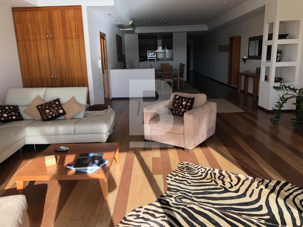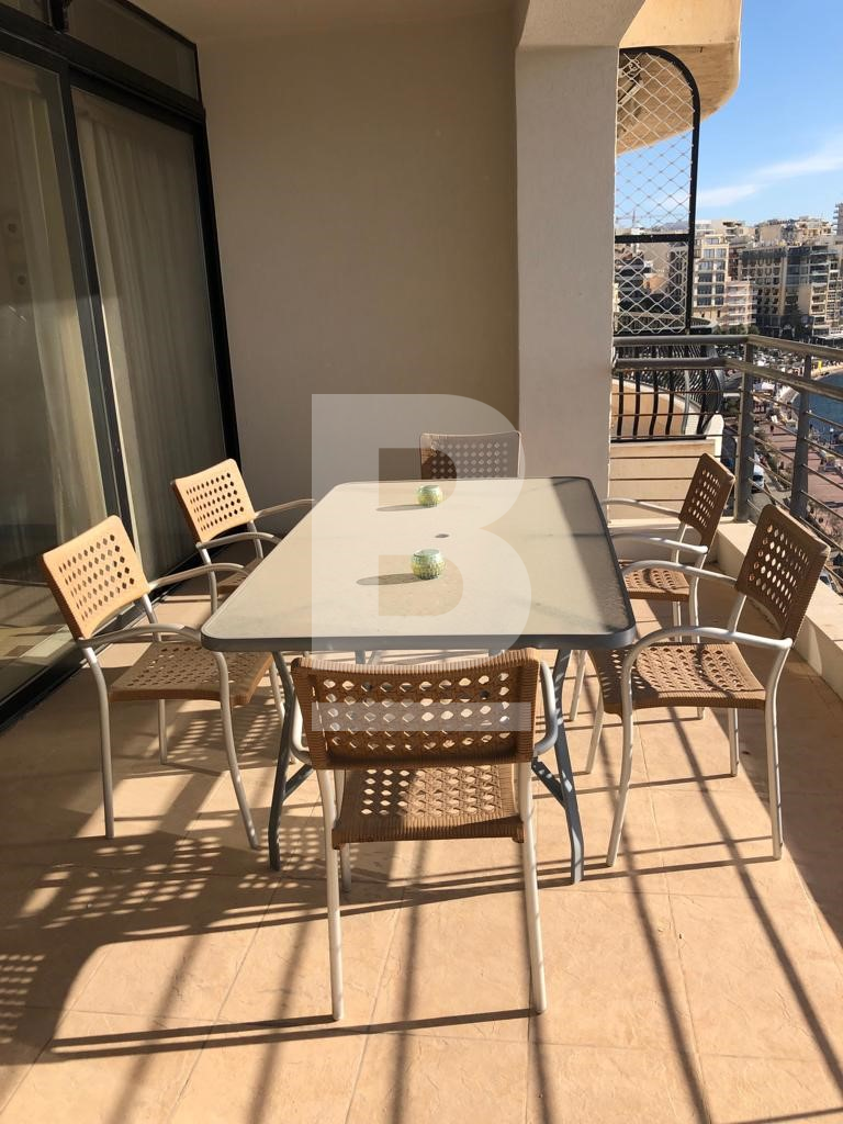 An outstanding seafront apartment situated close to all amenities. Accommodation comprises in kitchen, sitting / dining room which leads to a terrace with outdoor furniture enjoying breath-taking views, 3 bedrooms (main with study, bath and shower en-suite), bathroom, washroom and a 2-car garage. This apartment also includes under floor heating, parquet, 2 Plasma televisions, washing machine, dishwasher, microwave and air-conditioning units throughout.