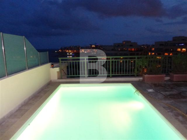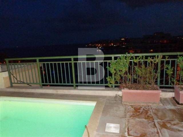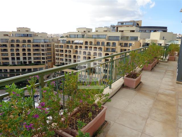 Lovely PENTHOUSE with a private swimming pool and forming part of the Portomaso development. A superb, luxury furnished, fully equipped with air-conditioning units measuring 400 sqm, situated in this ever so popular marina development. Layout in the form of a spacious modern open plan lounge / dining room and kitchen leading onto a very spacious terrace with swimming pool enjoying stunning marina and sea views from the living room areas and terraces, 3 double bedrooms (all with en-suite facilities including Jacuzzi - main bathroom with a round bath tub), guest toilet, sauna, utility/laundry room and box room. Served with lift, intercom, fire alarm, one car space and other back terraces. Items include 4 TV's (all with satellite decoders), washing machine, dryer, dishwasher, microwave and log fire-place. Optional use of the Hilton Resident's Merkanti pool.