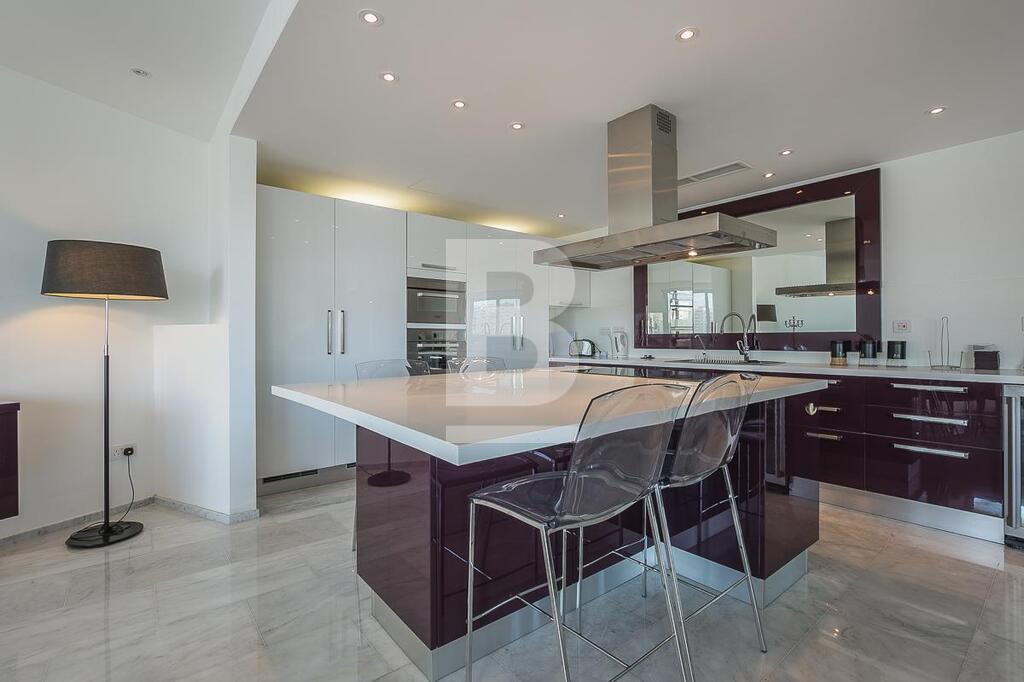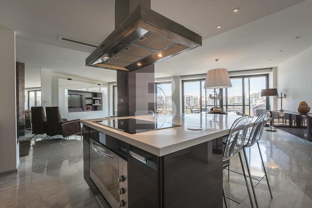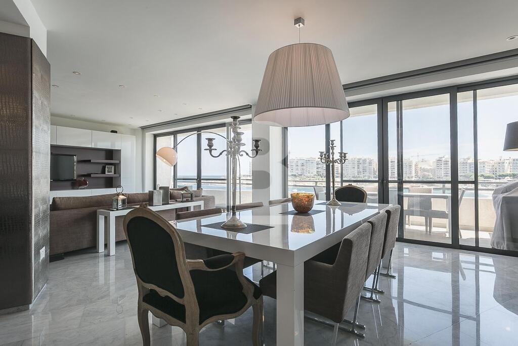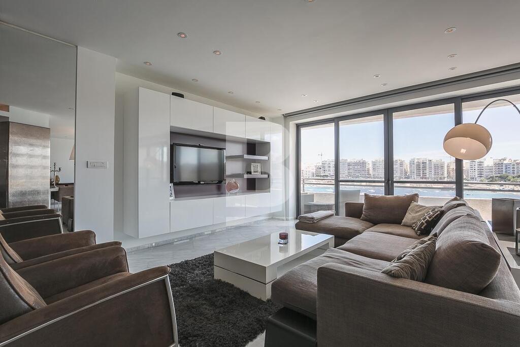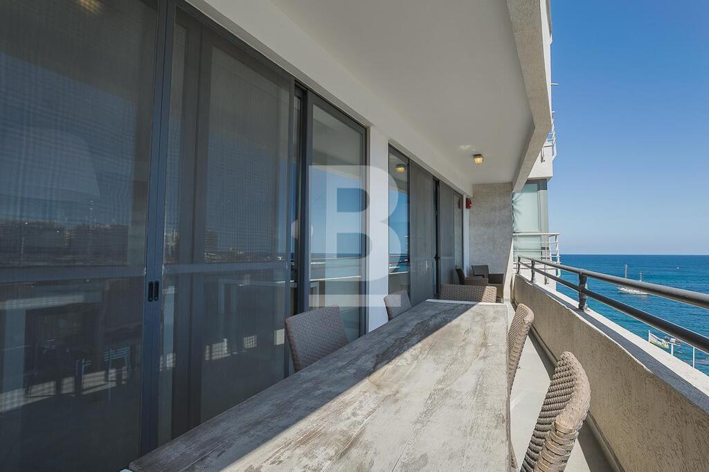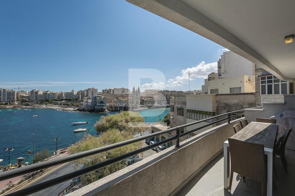 A very well located SEAFRONT APARTMENT recessed from the main road but directly overlooking St. Julian\'s bay. Accommodation measuring 200sqm comprises entrance hall, spacious open plan kitchen / breakfast area, wide fronted sitting / dining room leading onto wide terrace enjoying the fantastic sea views of St.Julians and Balluta Bay, guest toilet, study room, washroom, 3 double bedrooms (main with en-suite facilities and back balcony), and main bathroom. Property is highly finished and has a concealed air-conditioning/heating system throughout and including 1 underlying car space. Worth viewing!!
