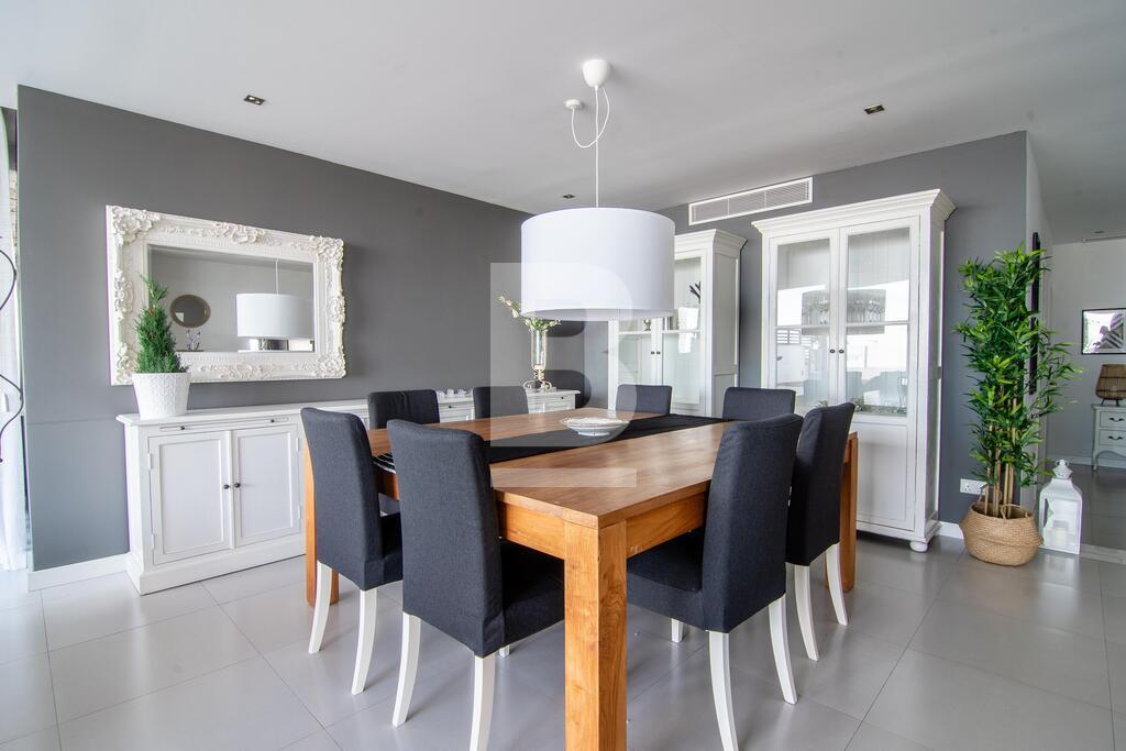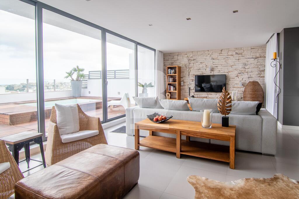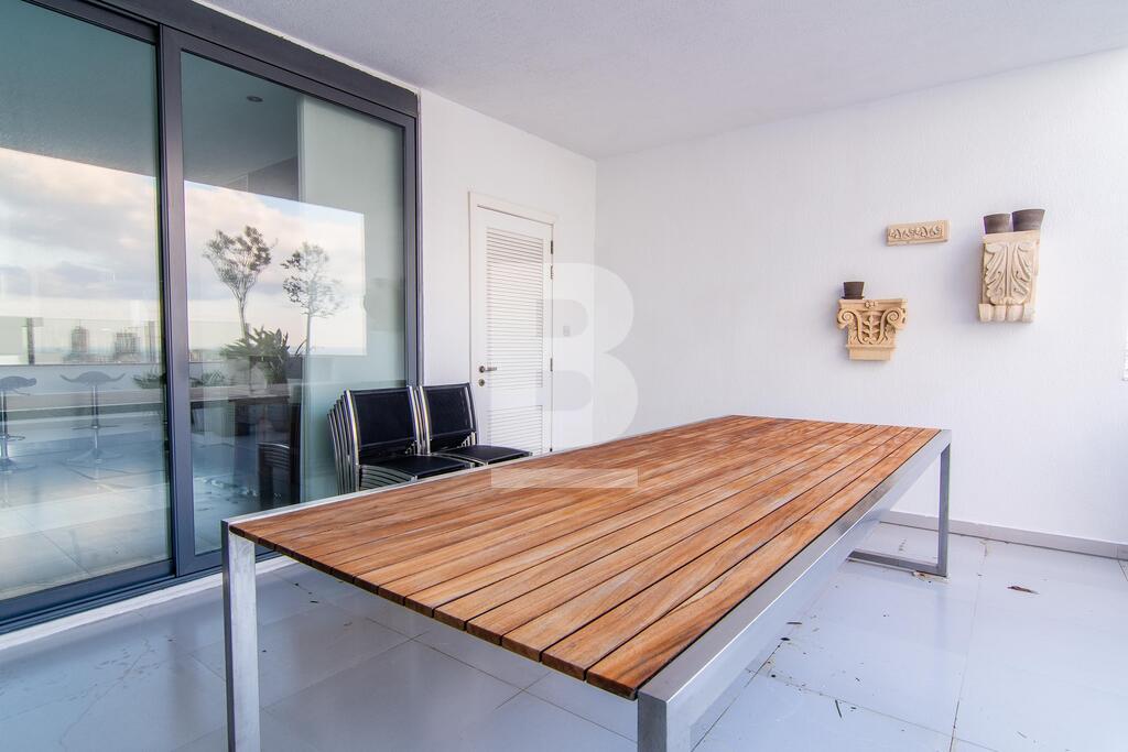 A centrally located Highly finished PENTHOUSE with modern furniture throughout comprising in hall, kitchen/b'fast, living/dining room with a spacious terrace equipped with Jacuzzi and enjoying nice open views. This property comprises of 3 double bedrooms (main with en-suite shower room), bathroom and car space, comes ready to move into and includes all appliances such as washing machine, tumble dryer, television, dishwasher, air-conditioning, lift and intercom. Viewing is highly recommended.