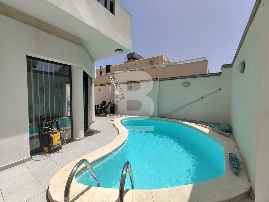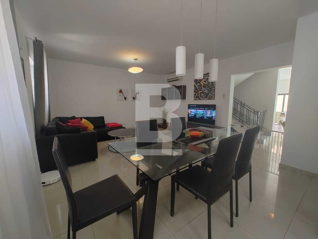 A bright and modern semi-detached villa situated in this central residential villa area. This villa is finished to modern high standards and consists of entrance hall, fully fitted kitchen / breakfast leading onto a swimming pool and deck area, spacious living / dining room, 3 bedrooms (main with en-suite bathroom and terrace), bathroom, guest toilet, whole roof enjoying lovely views and a large lock-up garage . This property is fully equipped with air-conditioning units and includes LCD television, dishwasher, washing machine and outdoor furniture.
