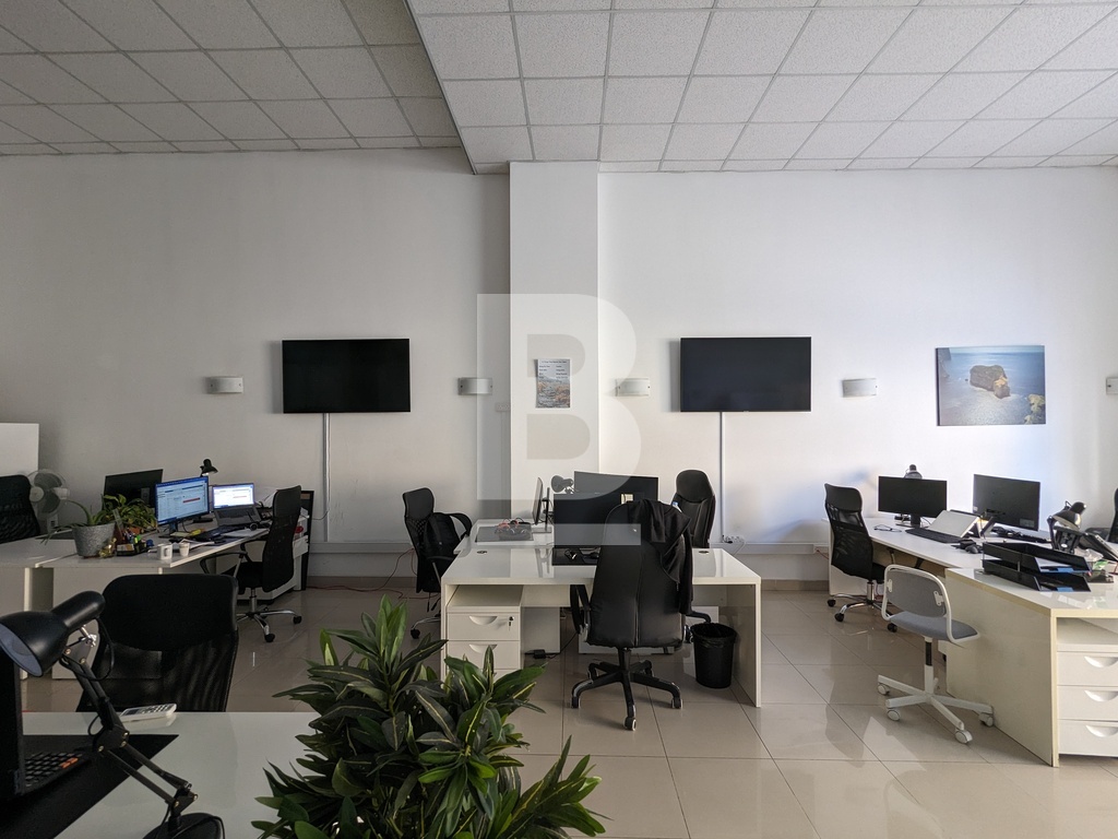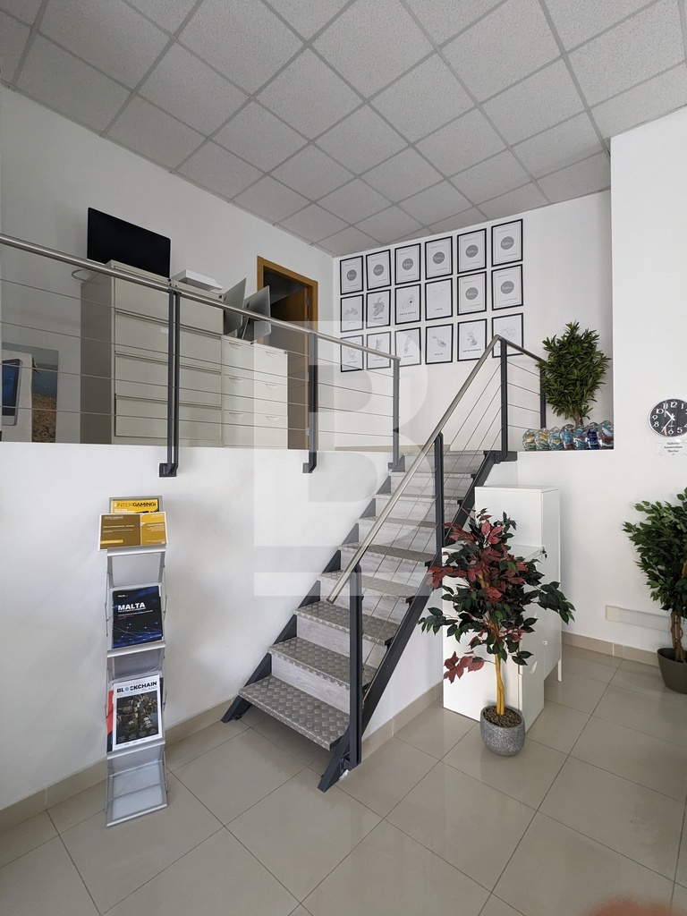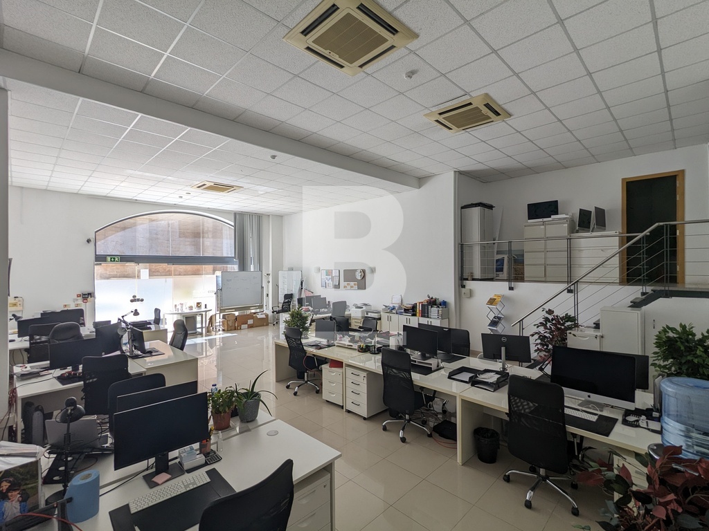 A bright office/retail outlet measuring approximately 100 square metres. This double height premises is finished with Gypsum suspended ceiling, ceramic floor tiles, floor to ceiling glass apertures and includes double glazing, is fully air-conditioned, wall electrical sockets and I.T. data sockets all around with space for I.T. Server, kitchenette, toilet and storeroom. The area has a split-level surface, the higher level overlooks the rest of the space with Stainless Steel railings all around and subject to availability it may also be combined with adjacent premises making a combined internal area of 240sqm. These premises may be converted to be used as a clinic, a gym, a supermarket, a showroom, a retail outlet a salon or other business that require a prominent ground floor presence. Also includes a parking space.