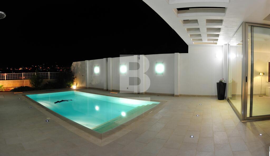 A beautifully finished SEMI DETACHED VILLA set in a lovely residential area enjoying lovely open views. Property is built on a plot measuring approximately 600sqm and comprises an entrance hall, fitted kitchen / breakfast, sitting / dining room, study, store room / multipurpose room, guest toilet, 3 bedrooms (all including en-suite bathrooms), 1 car garage and a spacious swimming pool with deck area and landscaping. Property is finished to the highest specifications including lighting, fully-fitted kitchen, air conditioning units in all rooms, solar heating, insulation, state of the art bathrooms and much more. Viewing highly recommended.
