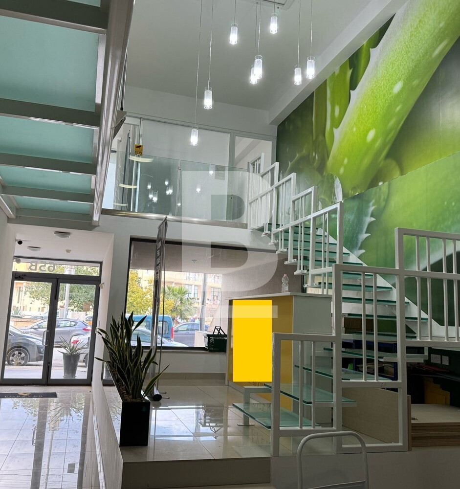 A brand new prominent showroom with a 25.5 ft frontage, measuring approximately 230 square metres and situated in this busy and central area. Property consists of a ground floor showroom with a mezzanine floor, highly finished with stylish glass bridges, modern fixtures and finishes. Property is all finished to high specifications, serviced with a private lift accessing both floors and is fully air-conditioned. To complement this property there is an optional underlying 8 car garage and storage area. The approved showroom shall be put to any class 4 excluding supermarket, minimarket, butcher, fishmonger and pharmacy.