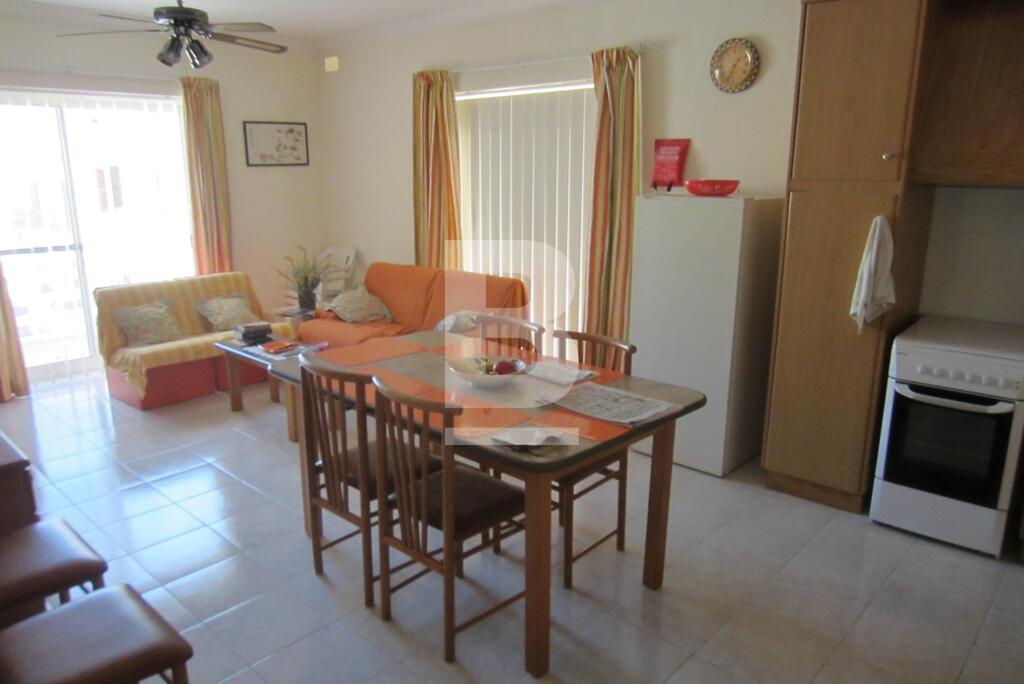 A spacious and bright apartment situated in this smart block, a stone's throw away from one of Malta's most popular sandy beaches, and close to all amenities. Property consists of large fully equipped kitchen. 2 double bedrooms, leading onto side balconies, 1 bathroom. This apartment also enjoys use of a communal pool. TV, washing machine
