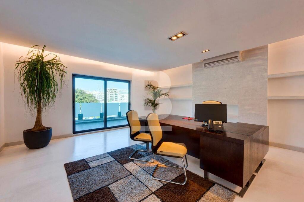 A stylishly finished OFFICE enjoying views of the Msida marina. Newly refurbished common areas are clad in marble and glass, surveillance cameras and video intercom. Fully air-conditioned office measures 160sqm with a 25 sqm terrace with kitchenette and 2 toilets. Comprising lighting and power and data cables. Served with lift. Parking and back-up generator available at extra cost.