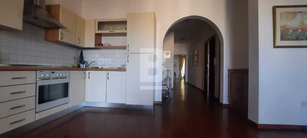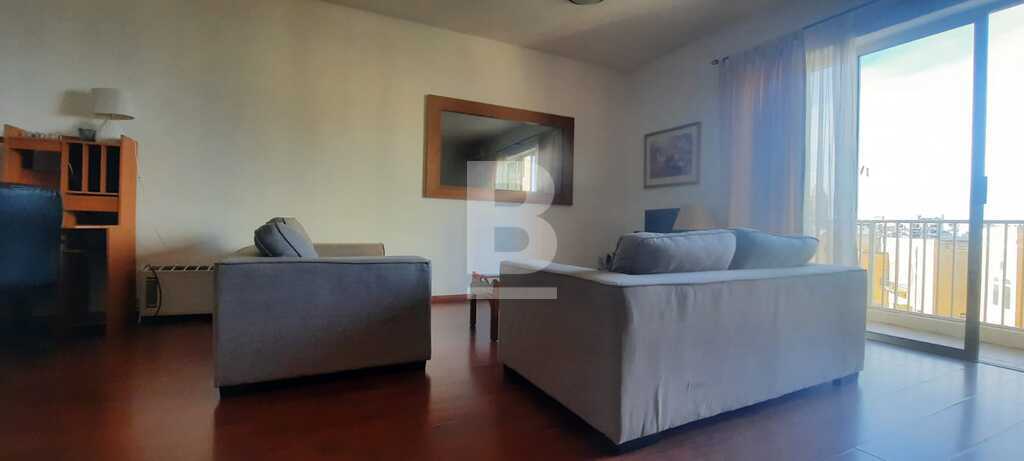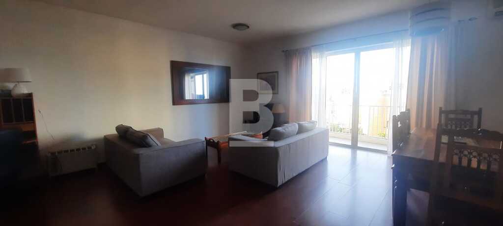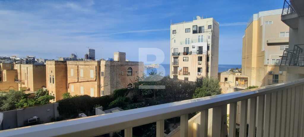 A very bright and airy 3rd floor apartment located just off the seafront and Sliema's lovely promenade. Property has been modernly refurbished with laminate parquet flooring throughout and consisting of a spacious kitchen/living/dining area leading onto wide terrace enjoying partial sea views, 2 bedrooms (1 double & 1 twin) and 2 bathrooms (1 en-suite). Property includes an air-conditioner in main area, Plasma TV and a washing machine. Optional car space.
