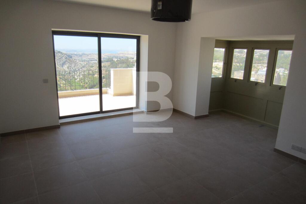 A bright, well finished & furnished apartment with amazing valley and distant sea views. Located in a gated community in a tranquil location. The property consist of a entrance hall leading to the open plan kitchen/living/dining area enjoying a very large terrace, ideal for entertainment. The back of the apartment includes a very large main bedroom with access to the terrace, a Maltese Balcony and en suite bathroom, main bathroom and two smaller bedrooms (one en suite). Property enjoys central air conditioning and gas heating, washer, dryer, use of pool and 2 car spaces.