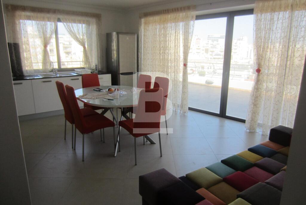 A lovely, brand new and unique duplex penthouse, forming part of this smart up market corner block right across the St. Julians promenade and close to all amenities. Property consists of 2 bedrooms (1 double and 1 single) on first floor, 2 bathrooms ( main ensuite), lovely wooden bar and living area, perfect for entertaining, large corner terrace enjoying lovely unobstructed sea views. On the upper floor one finds a third bathroom, fully equipped kitchen/ living/dining area leading to an 85 sqm terrace enjoying spectacular sea views. Fully air-conditioned. 2 satellite flat screen TV's. A must see!