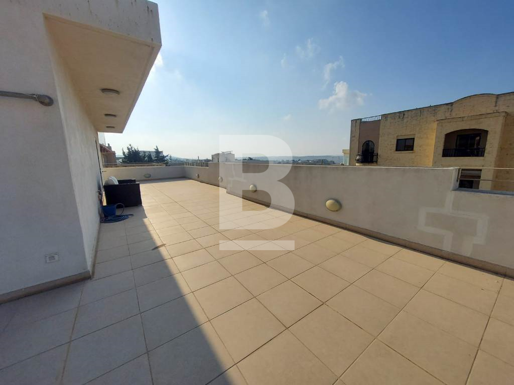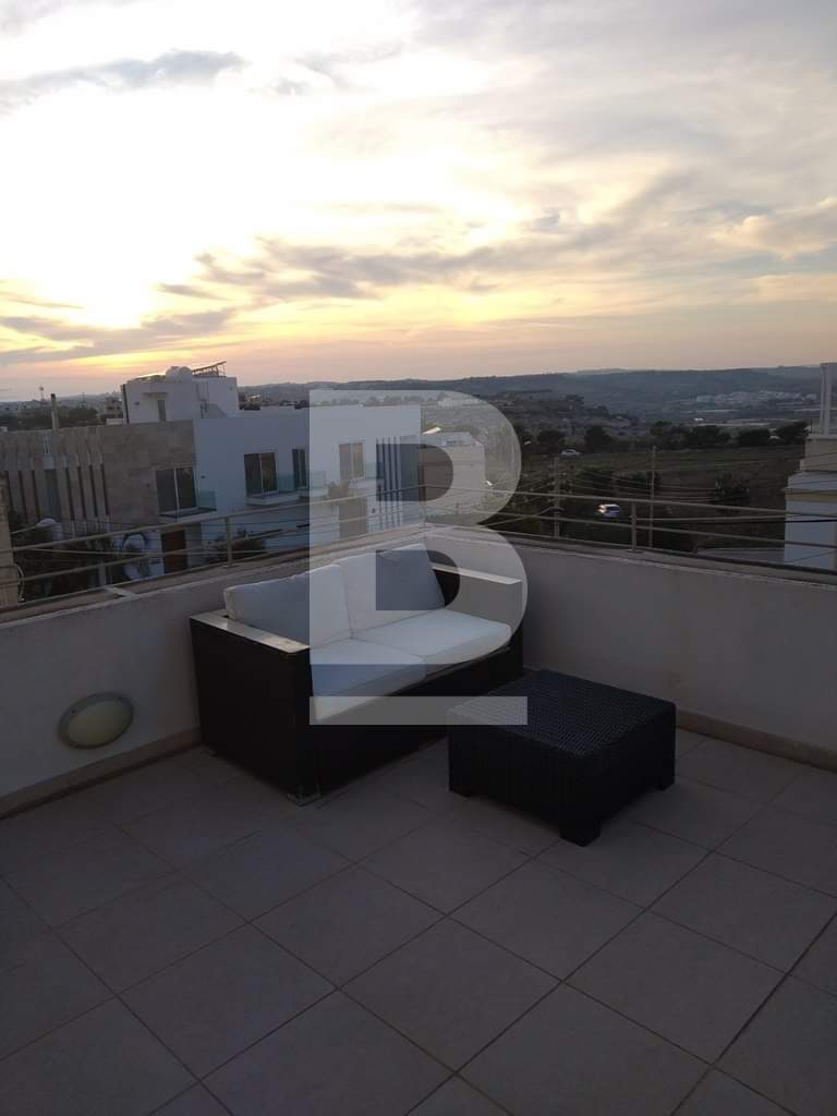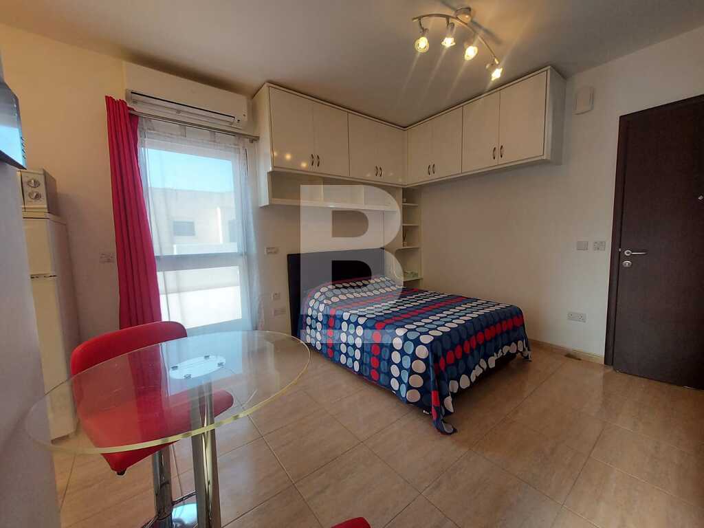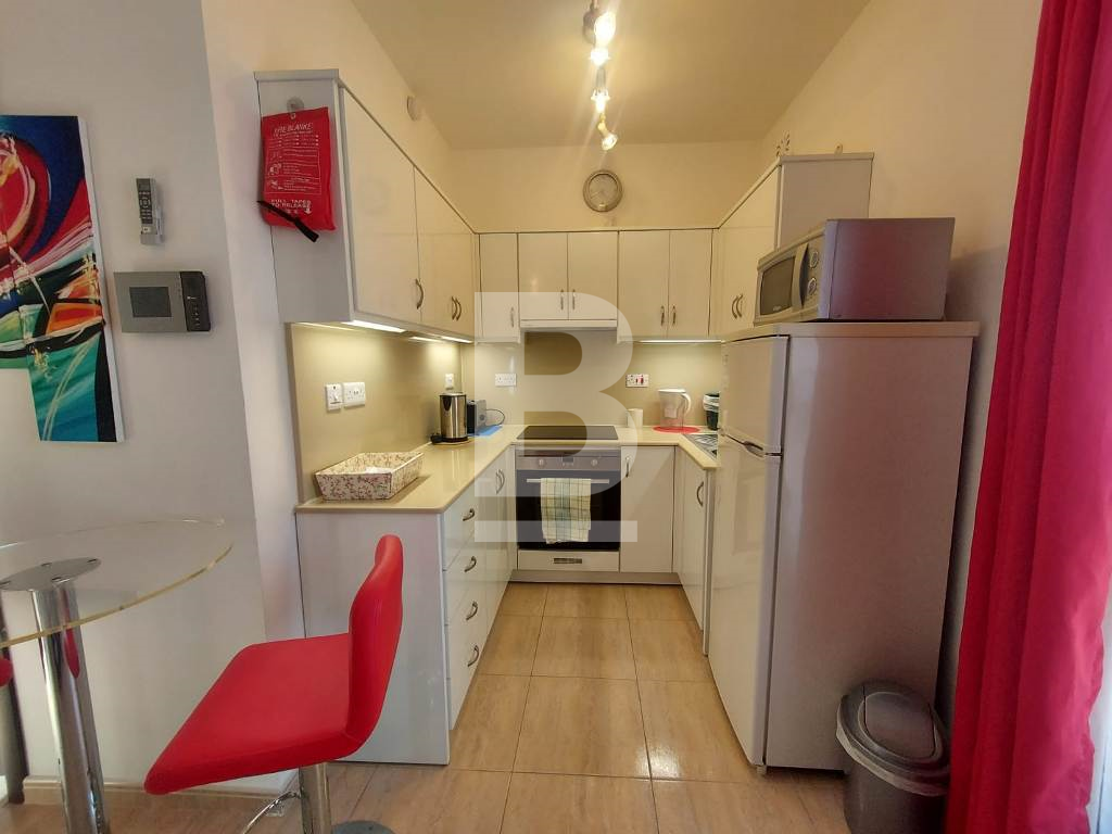 This property is fully furnished to very high standards. It is on the second floor level and forms part of a very small and exclusive block. Parking is not a problem. It has a massive 100 sqm terrace with fantastic unobstructed views of Bugibba, St. Paul's Islands and beyond. Layout comprises of a spacious and open plan room with kitchen/dining/living/double-bed and separate shower room. This property is air-conditioned and comes with brand new modern furniture and many other extras including 32" TV, WIFI, intercom, washing machine and much more.