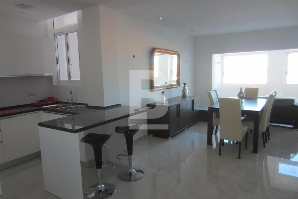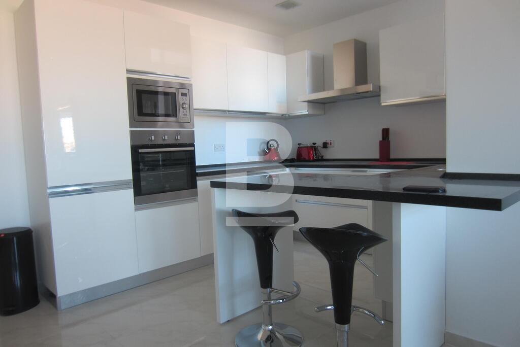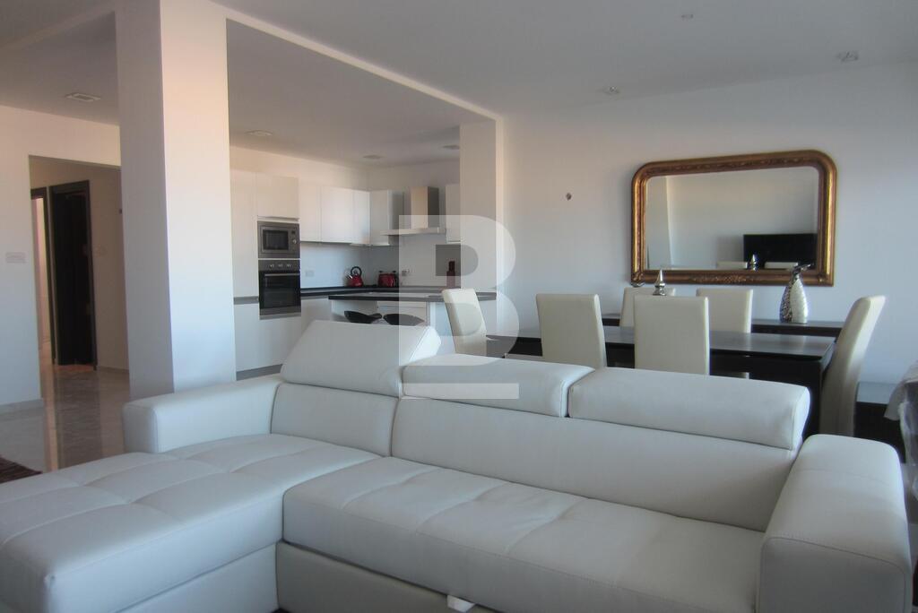 Large fully furnished and totally renovated apartment with a high end contemporary finish. The apartment enjoys sea views from both the front and back side. Featuring 3 bedrooms, 2 full baths with one being en-suite, two small balconies, open and spacious living area. The apartment comes with communal parking . The building offers 24 security, served by a lift and daily maintenance of common areas. Included: Flat screen smart TV, Wifi, Washing machine, Dryer, dishwasher, parking.