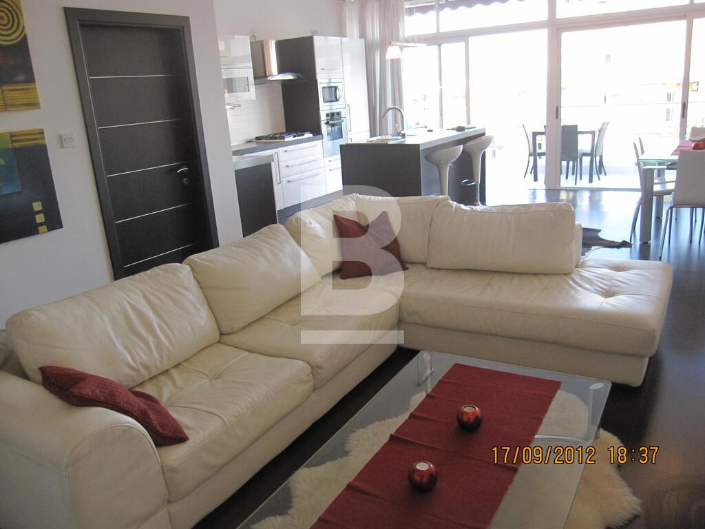 An expertly finished, designer apartment situated in this central location. Property consists of 2 double bedrooms (main with en-suite facilities), a spacious open plan living and dining area with fitted kitchen with centre island leading onto a good sized furnished balcony and main bathroom. Fully equipped with air-conditioning units and includes washing machine, dishwasher, flat screen tv and surround sound system.