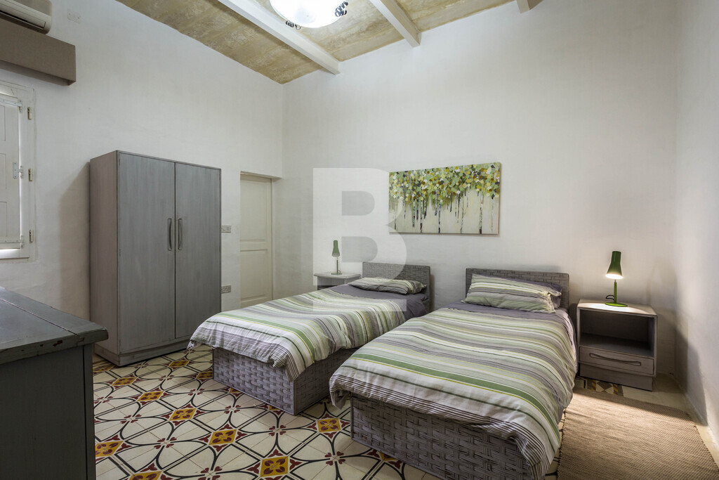 A lovely, unique and highly finished Townhouse situated in this much sought-after up market residential area, just outside Mdina, close to all amenities and public transport. Property comprises open plan fully equipped kitchen / living / dining area leading to a sizeable front garden, also back yard, 2 bedrooms ( one with en-suite facilities ) , main bathroom and fully equipped with air-conditioning units, flat screen TV, washing machine and dishwasher.
