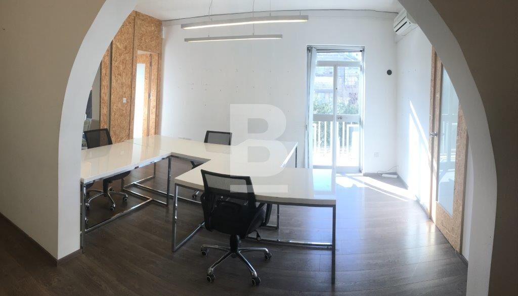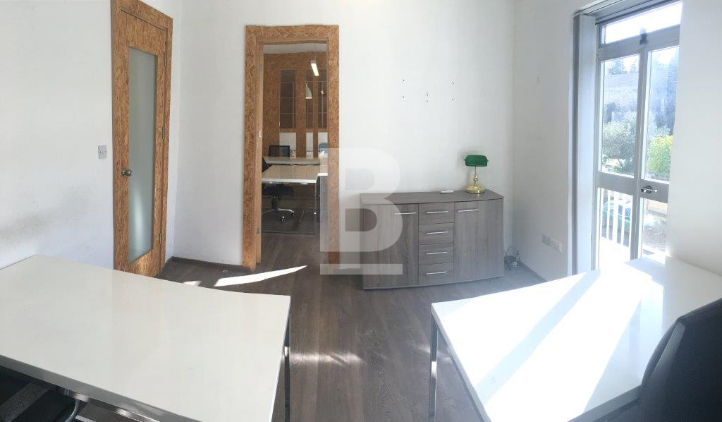 A smart corner office block in a prominent central area which presently houses a good selection of established companies. Bright and attractive office space available on 1st floor measuring approximately 53 square metres with its own entrance and consisting of own entrance/reception area, toilet, 2 independent offices measuring 14 and 25 square metres respectively and a well sized balcony. Property is bright, air conditioned and finished to a good standard.