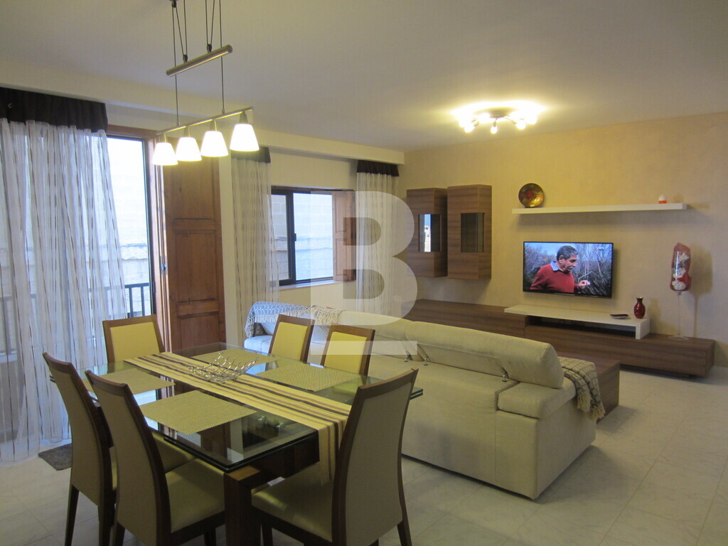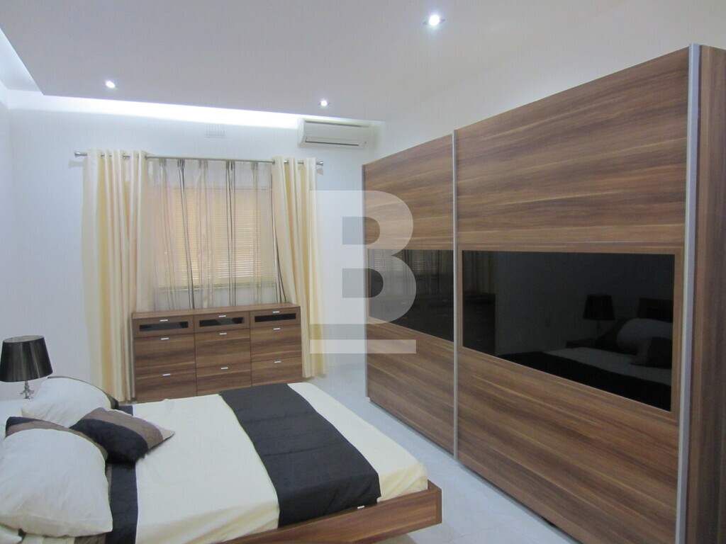 A well refurbished ground floor apartment, forming part of a smart development and located in a prominent area just off Spinola bay. Spacious layout includes an entrance hall, open plan kitchen / living / dining area leading onto a small front balcony, 3 bedrooms (main with en-suite facilities), main bathroom, washroom and a large back yard which may be equipped with outdoor furnishings making it ideal for BBQs and entertaining. Property includes air-conditioning units in all bedrooms, washing machine, dryer, dishwasher and plasma TV and an underlying 1-car garage.