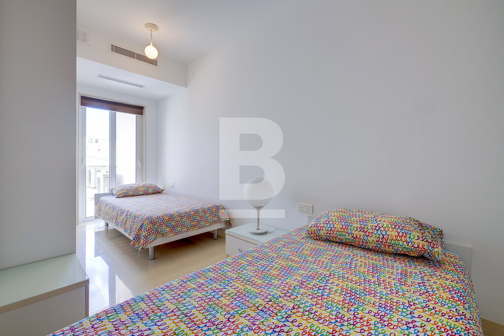 A bright and modern apartment situated close to Manoel Island and also to the University of Malta campus. Accommodation consists of a split level kitchen / living / dining room overlooking an open area, 2 bedrooms (double and twin), bathroom and back balcony. Apartment is fully equipped with air-conditioning units and includes dishwasher, LCD television, washing machine, dryer, intercom and lift.