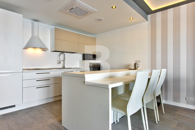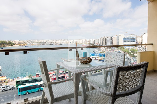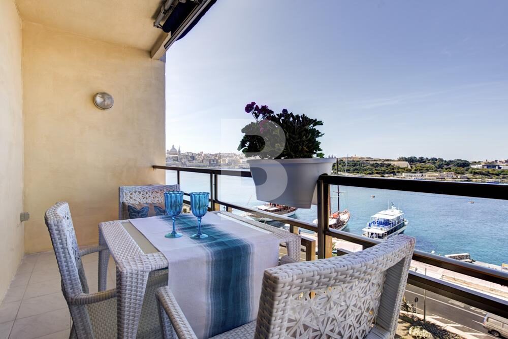 A very stylishly designed and modernly furnished third floor seafront apartment situated in the heart of Sliema shopping and cafeteria area. This beautiful corner apartment enjoys breathtaking sea views, as well as views of Valletta bastions and Manoel Island. This property consists of an open plan kitchen / living / dining area enjoying lovely views, three double bedrooms and two bathrooms. Property is air-conditioned and equipped with all necessities that makes an ideal family home. Weekly cleaning service and nearby car space available