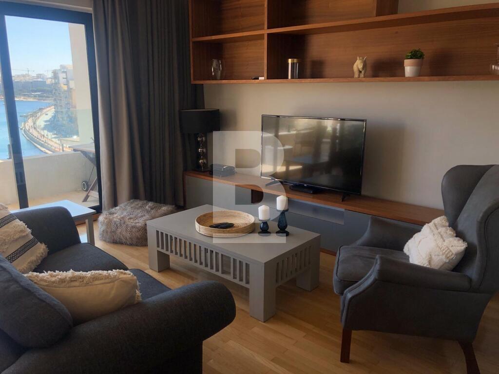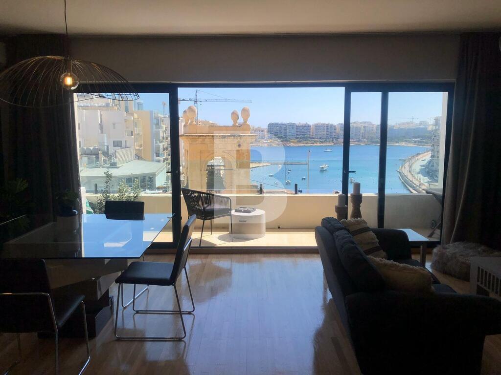 Modern, highly finished and fully furnished apartment located in this sought after, central area close to the St. Julian's promenade, all amenities, restaurants, cafes and public transport. Property comprises (fully equipped) kitchen / living / dining area leading to a terrace enjoying spectacular sea views, 1 bedrooms, 2 bathrooms (main with en-suite facilities). Fully equipped with air-conditioning units, flat screen TV, washing machine and dishwasher. Optional car space also available.
