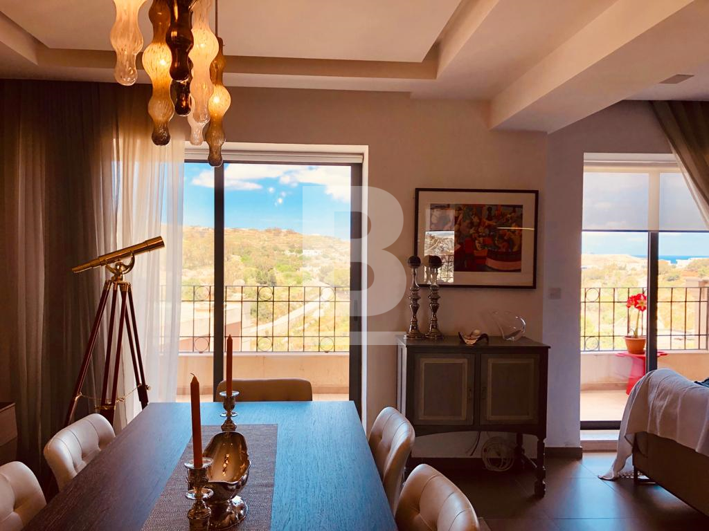 Stunning, up market apartment forming part of this exclusive residential gated complex, located in one of Malta's most sought after , up market areas. Property comprises (fully equipped, high end) kitchen / living / dining area leading onto a spacious terrace enjoying open country views. 3 bedrooms (main having a walk-in wardrobe), 3 bathrooms ( two being being en-suite). Fully air-conditioned, central heating, washing machine, tumble dryer, dishwasher. 2 car garage also included, as well as use of gym and communal swimming pool. A true gem of a property with no costs spared!