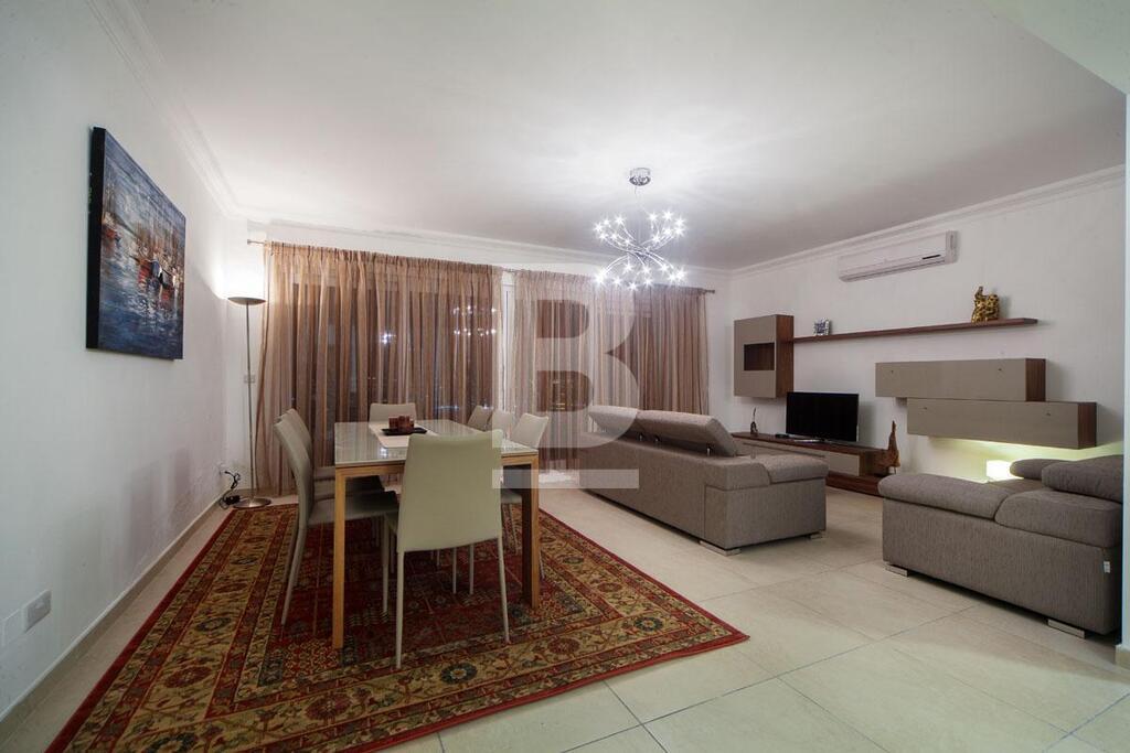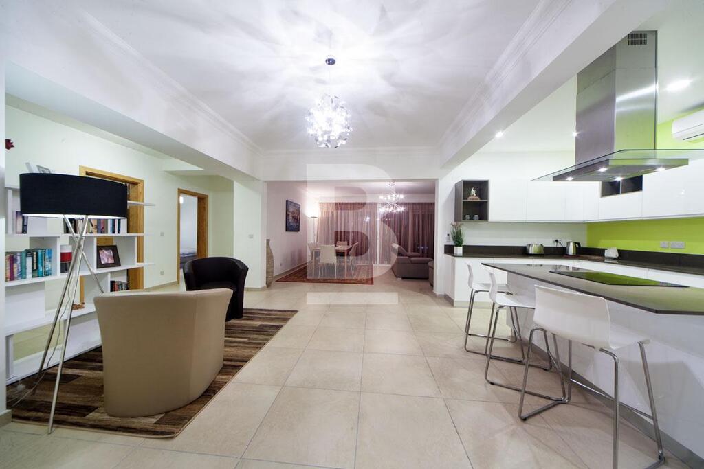 A spacious fully furnished, luxuriously finished apartment located in a prestigious development in a sought after area close to all amenities. Property comprises of a 3 bedroom (one with en-suite facilities), bathroom, lounge with a small library / reading area, dining / living room and a fully equipped kitchen. Property is fully air-conditioned and has two verandas, one with stunning views of Manuel Island, Sliema and Valetta and the other enjoys beautiful views of the Sliema (Qui-si-sana) promenade area. The apartment is part of a recently finished stylish residential block, manned with 24x7 security, supported by the services of common-area cleaning and maintenance company and include one-car garage space in the underlying garage forming part of the complex. It also has the sharing of the common pool.