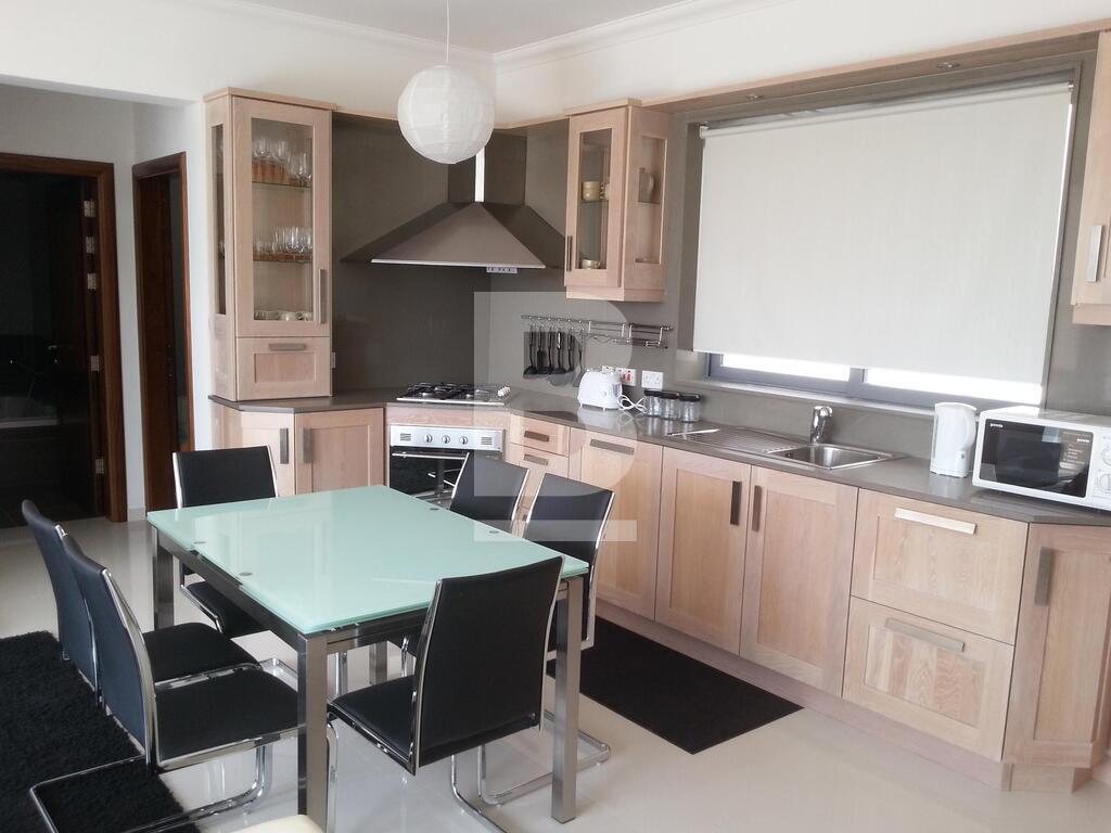 Brand new 2-bedroom impeccably finished penthouse having a footprint of some 260 sqm within an elegant development. Located on high grounds the surrounding terrace (approx. 155 sqm) enjoys full privacy and 360 degree views. Accommodation comprises: direct and secure access directly from the lift onto a large living / dining / kitchen; two double bedrooms, en-suite, bathroom room and laundry room. Includes a beautifully fitted kitchen, air-conditioning, and alarm system. Optional: Underlying 1-car lockup garages and all (brand new) furniture.