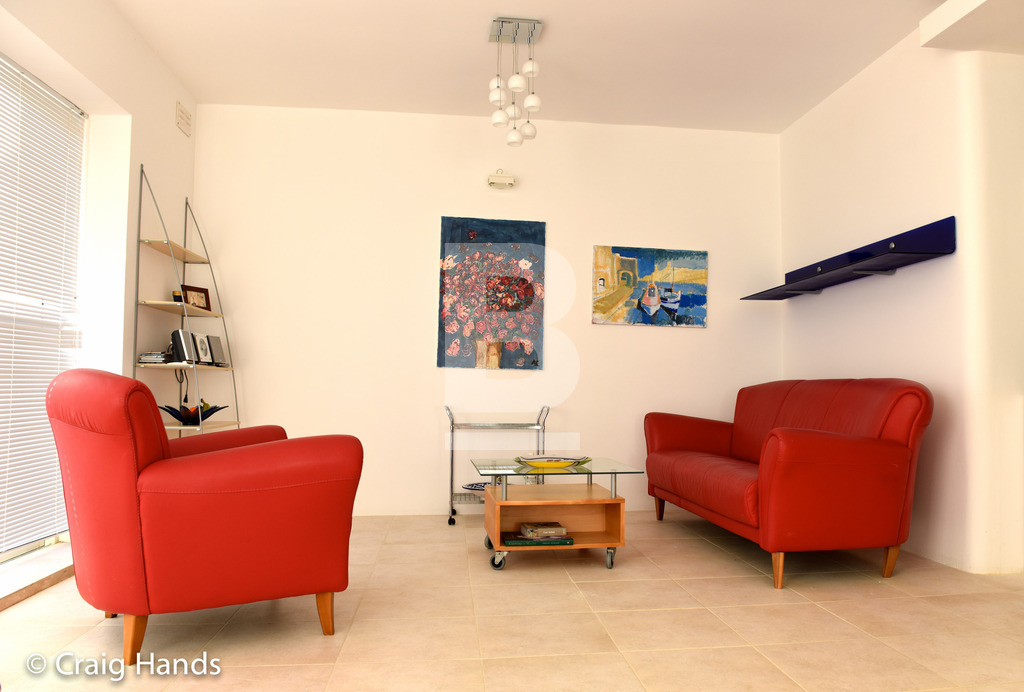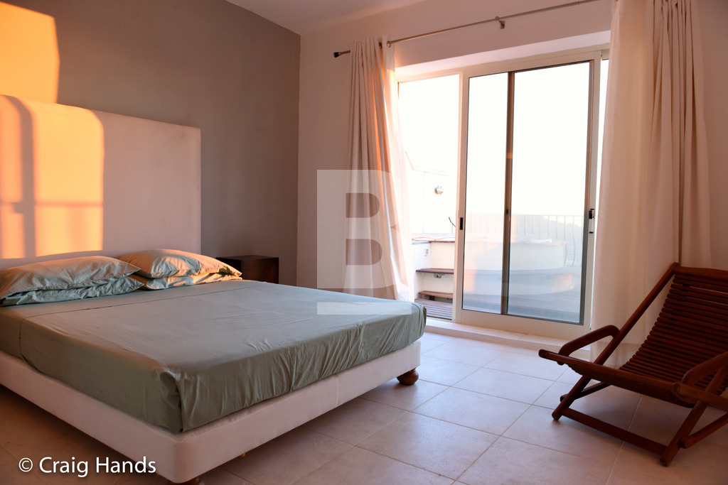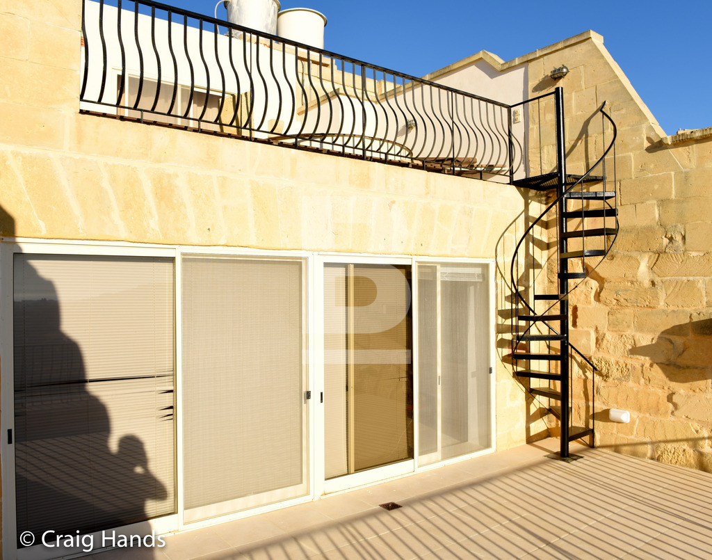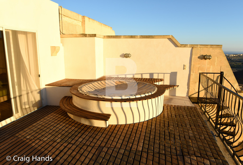 Contemporary, duplex penthouse situated on top of a cliff edge with unrestricted sea and country views in the quiet village of Zebbug. Accommodation comprises 3 double bedrooms with balconies (2 with ensuite facilities), main bathroom, fitted kitchen with bar and dining table and living area leading onto a large terrace. Top floor terrace is furnished with a jacuzzi and wooden deck area with inside or outside accessibility.