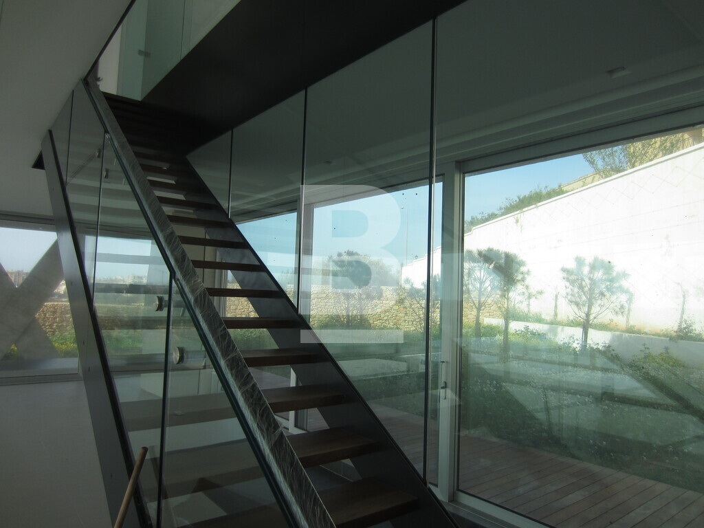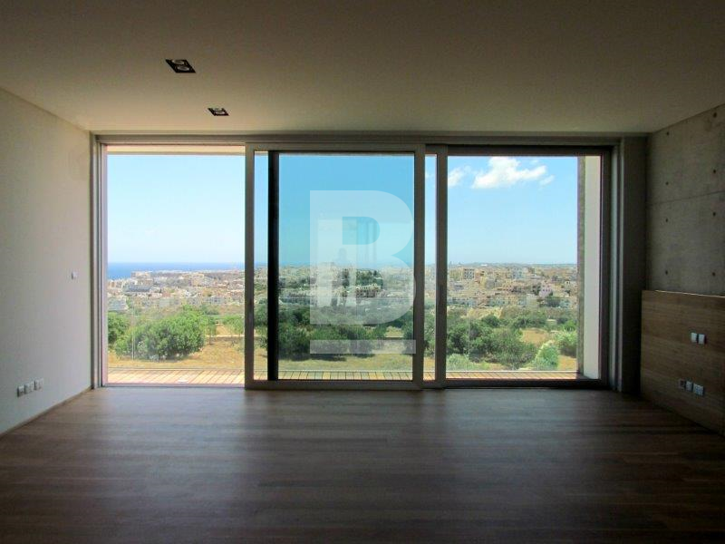 A designer finished, unfurnished fully-detached villa enjoying unique features and located in this quiet yet central area. Property lies on a plot measuring over 5000 square metres, enjoying a spacious layout and plenty of natural light in the form of entrance hall, guest toilet, a large open plan kitchen / living / dining area leading onto a lovely pool deck area with infinity pool and enjoying fantastic open country and distant sea views. On the upper level there is a gym, 2 bathrooms, 3 bedrooms all enjoying balcony and lovely views (large main bedroom also includes en-suite and walk-in wardrobe). This property includes large outdoor areas, a well sized room at basement level ideal to be used as a games room, home cinema or office, air-conditioning throughout, intelligent lighting and a state of the art sound system. This type of villa is very hard to come by and viewings are highly recommended.