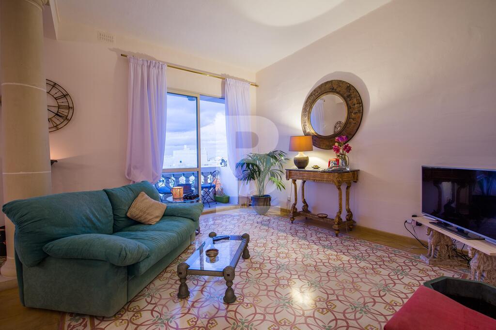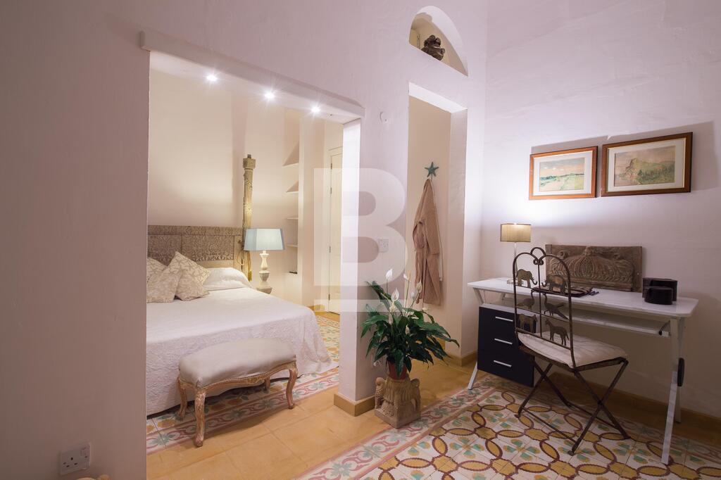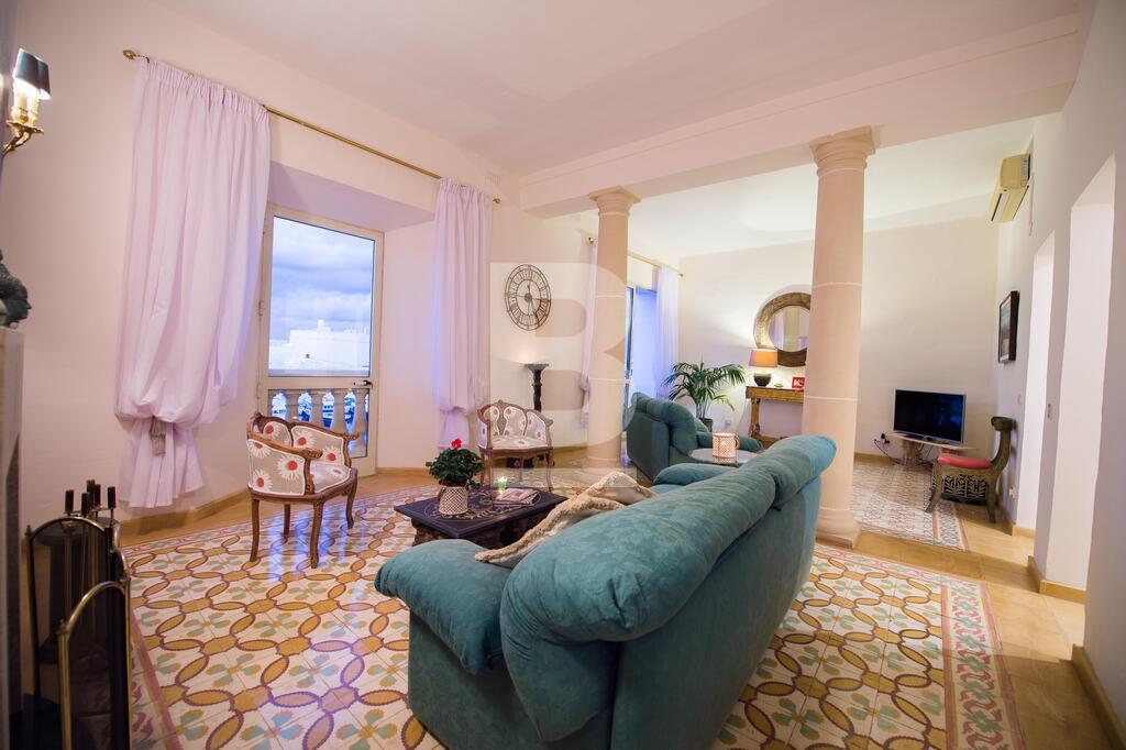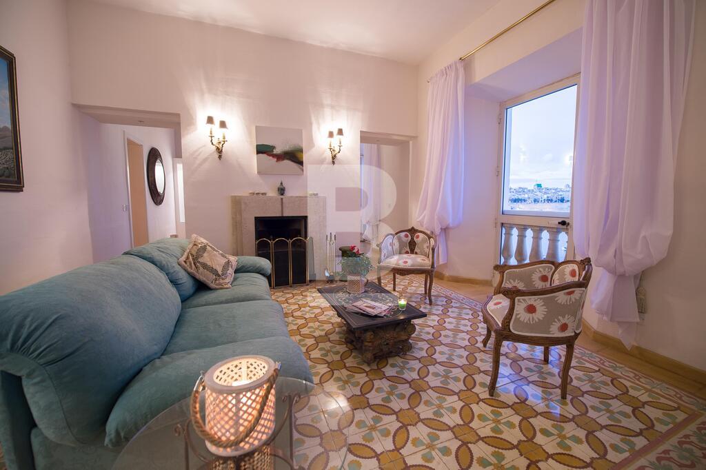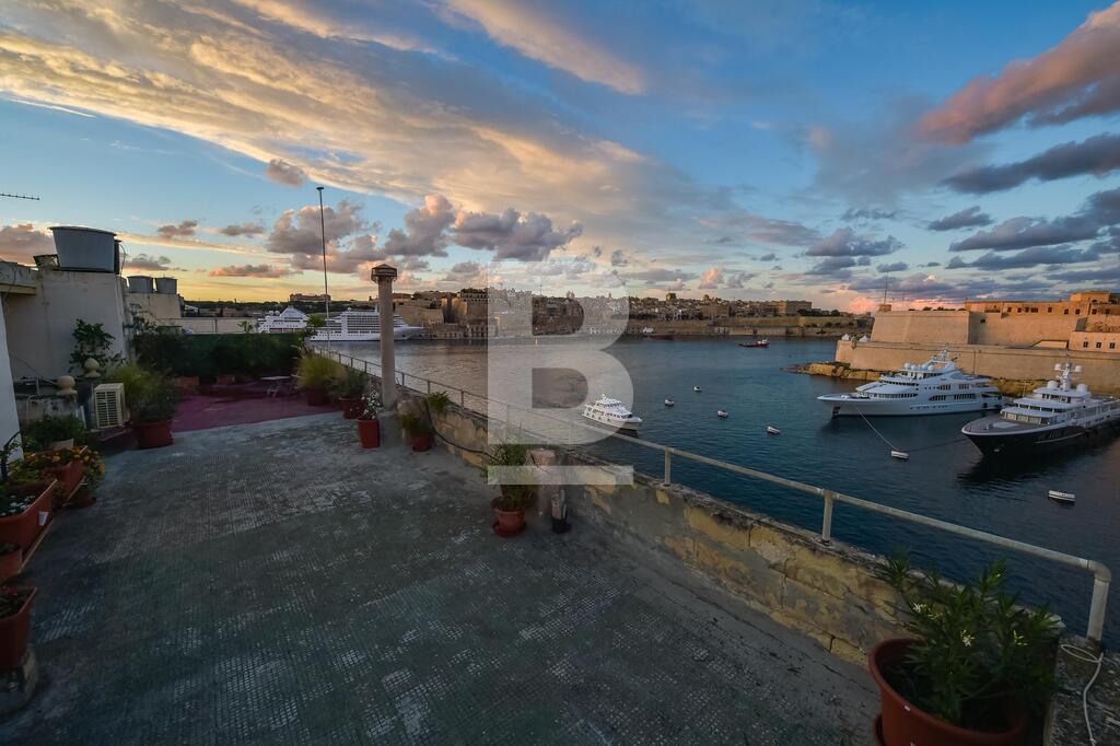 A well converted top floor apartment situated directly over the sea with Fort St Angelo straight opposite and stunning views of Valletta and the Vittoriosa Marina. Property consists of a large sitting room part of which is used as a TV area with 4 balconies overlooking the harbour, separate dining room with seating for 8 and also with balcony and harbour views, fully-equipped kitchen, guest toilet, small closet in hallway, two double bedrooms with en-suites (1 with balcony overlooking the narrow streets of this town). Property is fully air-conditioned and includes, ceiling fans, a working fireplace in sitting room, 42 inch smart TV , telephone and Wifi installed, dishwasher, washing machine, shared roof garden enjoying spectacular views of Fort St Angelo, Valletta and Vittoriosa Marina and also with an area where one can dry laundry.