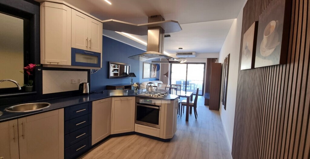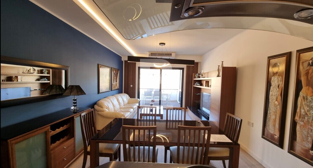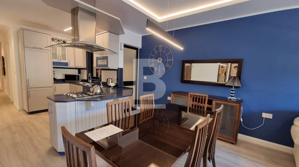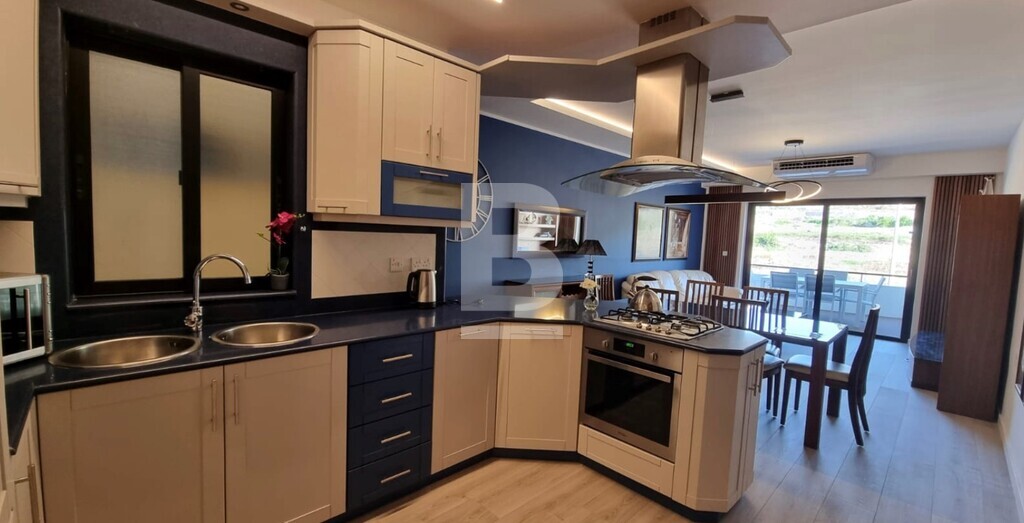 Highly finished and fully furnished first floor apartment, forming part of this smart block situated within short walking distance to the best and longest beach in Malta and to all other amenities. Property comprises a welcoming long entry hall, open plan kitchen / living / dining area leading to a spacious balcony with outdoor furniture enjoying open country views, two double bedrooms, study / third bedroom, main bathroom, shower room, small courtyard and a separate laundry room with a small balcony. This property includes air-conditioning units, TV, internet, washing machine, dryer, lift and intercom. Once a month maid service is also included. A one car lock-up garage complements this property. Viewing is highly recommended.