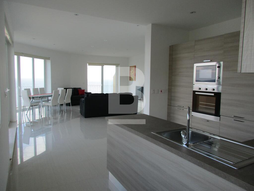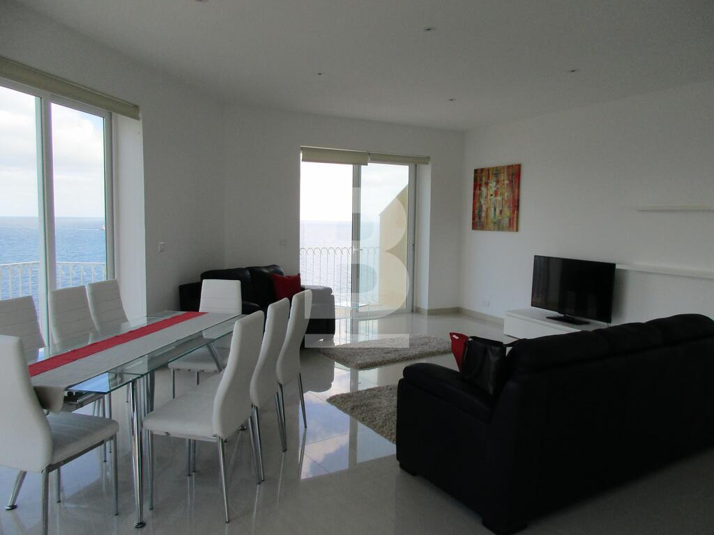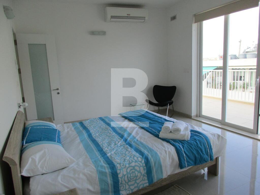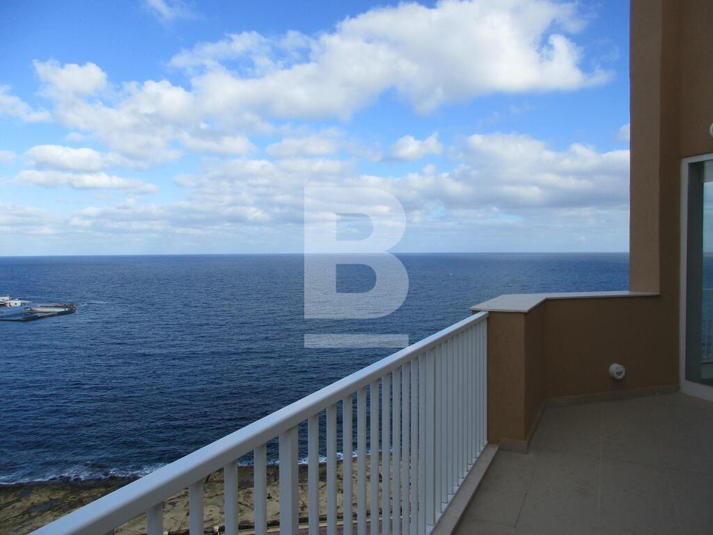 Highly-finished and fully-furnished seventh floor corner apartment situated in one of the best residential areas of Sliema near the Tigne peninsula. Property comprises an open plan kitchen / living / dining area leading on to a spacious terrace and front and side balconies with spectacular seaviews, 2 double bedrooms, study / third bedroom all leading to a terrace with views, box room / laundry room, en-suite shower room and main bathroom. This property includes air-conditioning units, TV, dishwasher, washing machine lift and intercom. A garage is also available upon request. Viewing is a must!
