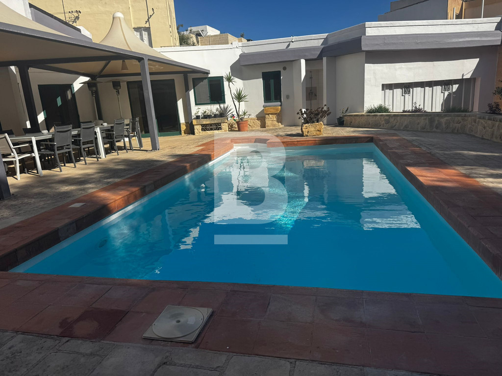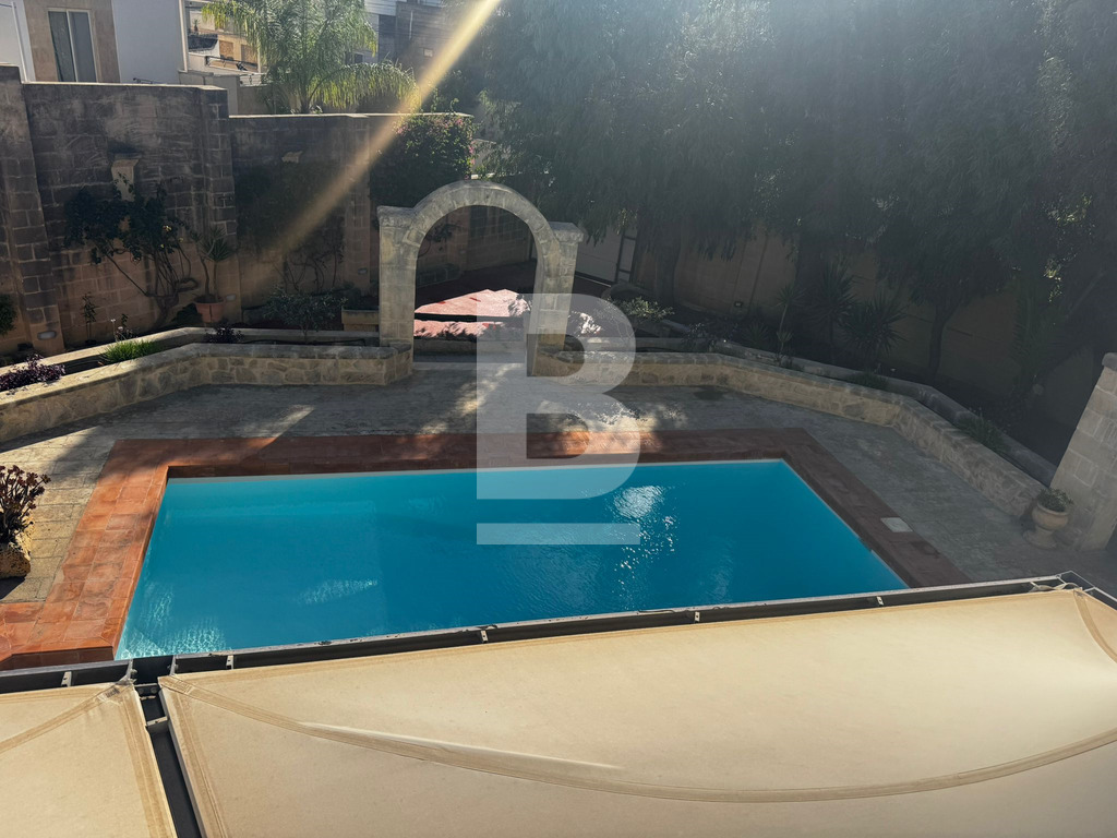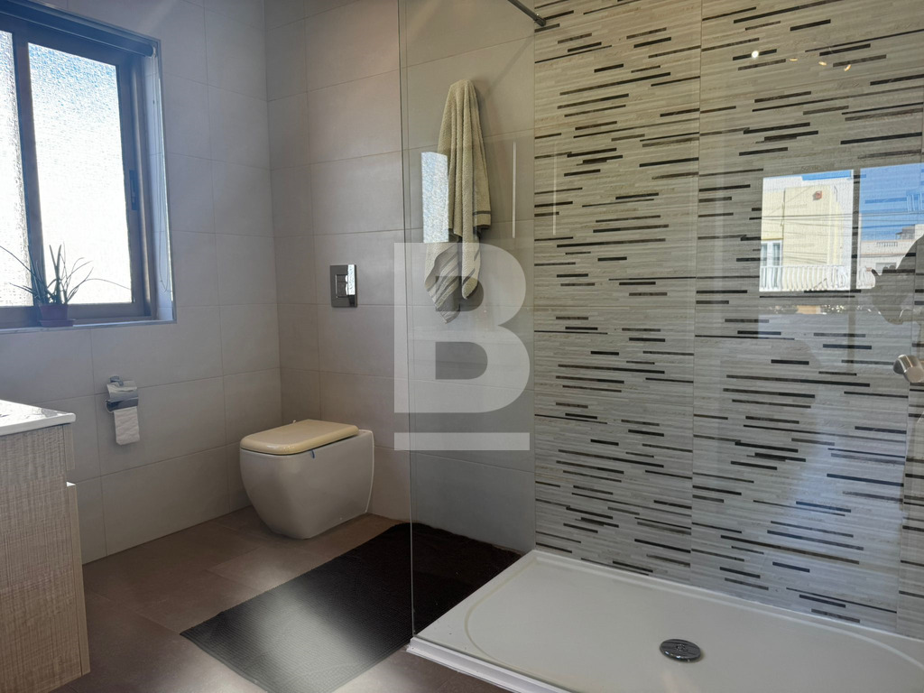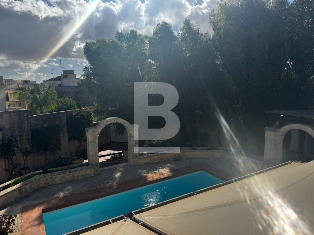 A bright and airy, recently refurbished semi-detached villa built on 900sqm plot, set in this established sought-after residential area of Mensija. Property comprises a welcoming entry hall, spacious sitting / dining area leading to a front porch, separate sitting lounge with functional fireplace, separate kitchen, guest toilet, games room with shower room all leading to a beautiful sundeck / BBQ area with swimming pool and surrounding garden. Upstairs one can find three double bedrooms with good size front and back balconies, two bathrooms (main and ensuite), laundry area with access to private roof top terrace. This property also includes air-conditioning units, TV, washing machine, dishwasher and a 4 car garage. Viewing is highly recommended!