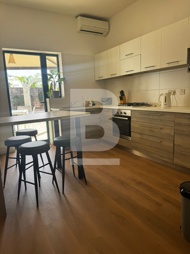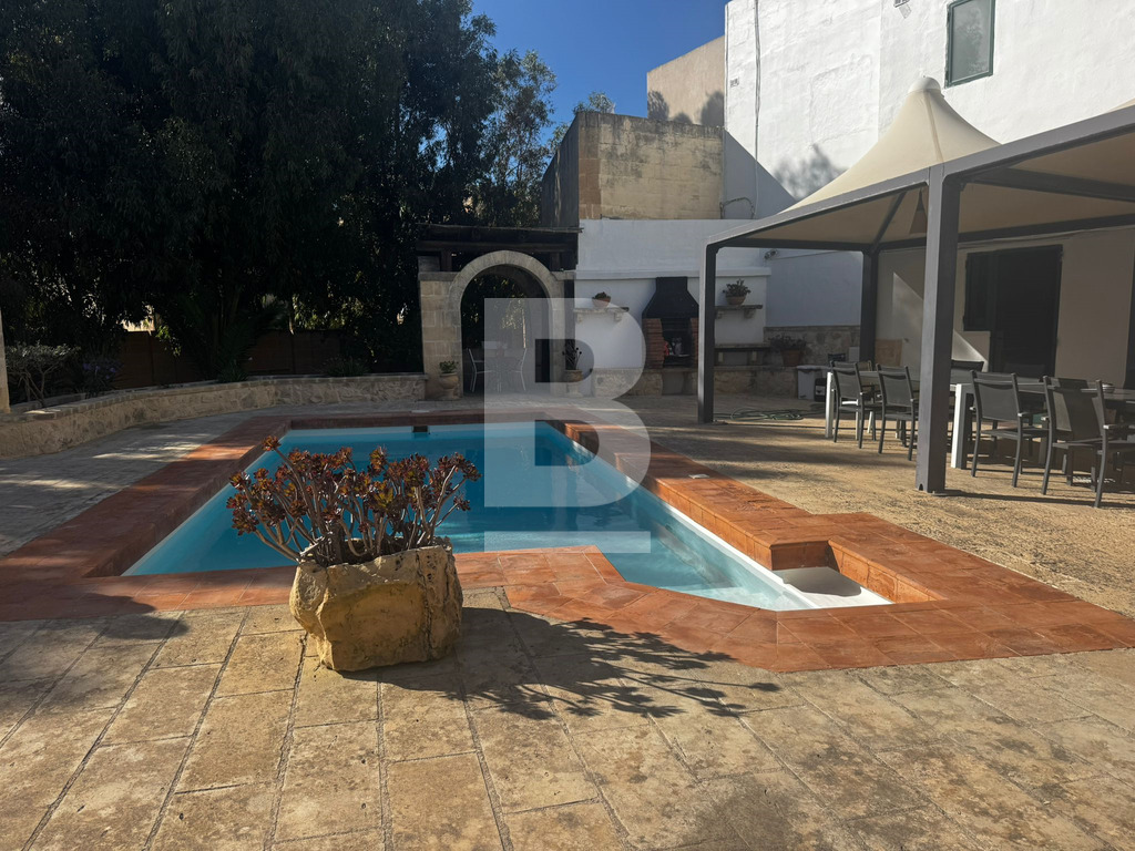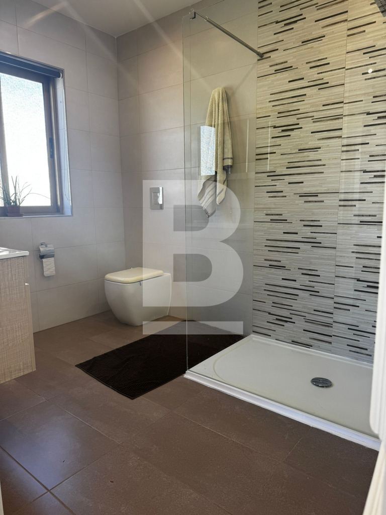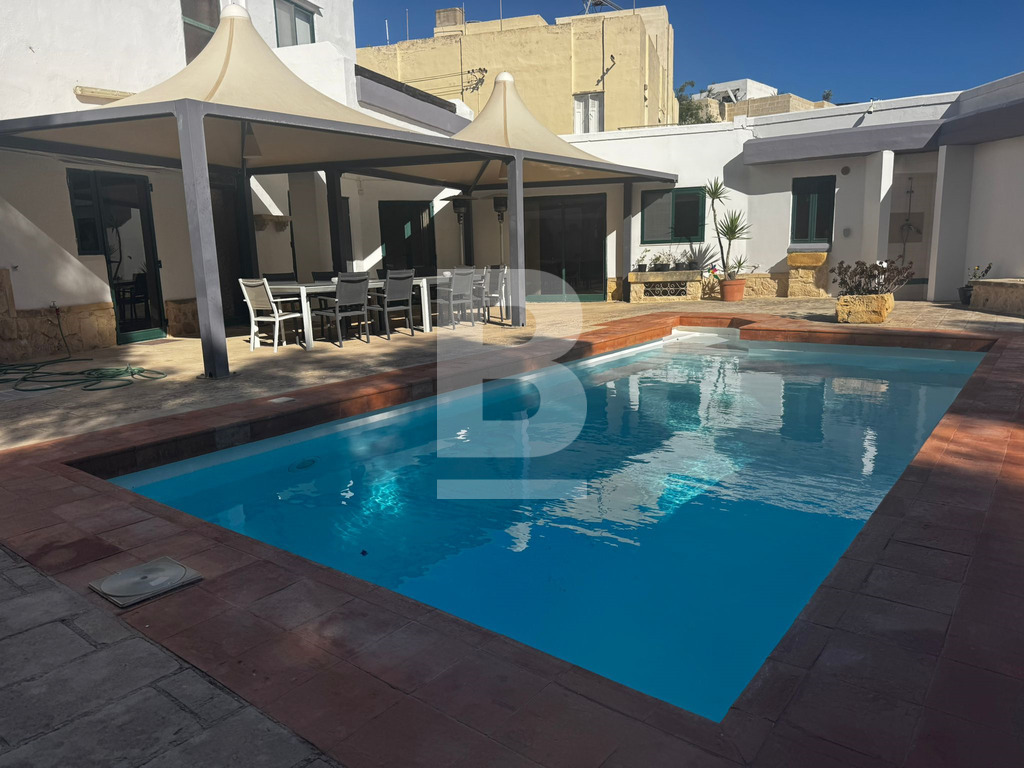 A bright and airy, recently refurbished semi-detached villa built on 900sqm plot, set in this established sought-after residential area of Mensija. Property comprises a welcoming entry hall, spacious sitting / dining area leading to a front porch, separate sitting lounge with functional fireplace, separate kitchen, guest toilet, games room with shower room all leading to a beautiful sundeck / BBQ area with swimming pool and surrounding garden. Upstairs one can find three double bedrooms with good size front and back balconies, two bathrooms (main and ensuite), laundry area with access to private roof top terrace. This property also includes air-conditioning units, TV, washing machine, dishwasher and a 4 car garage. Viewing is highly recommended!