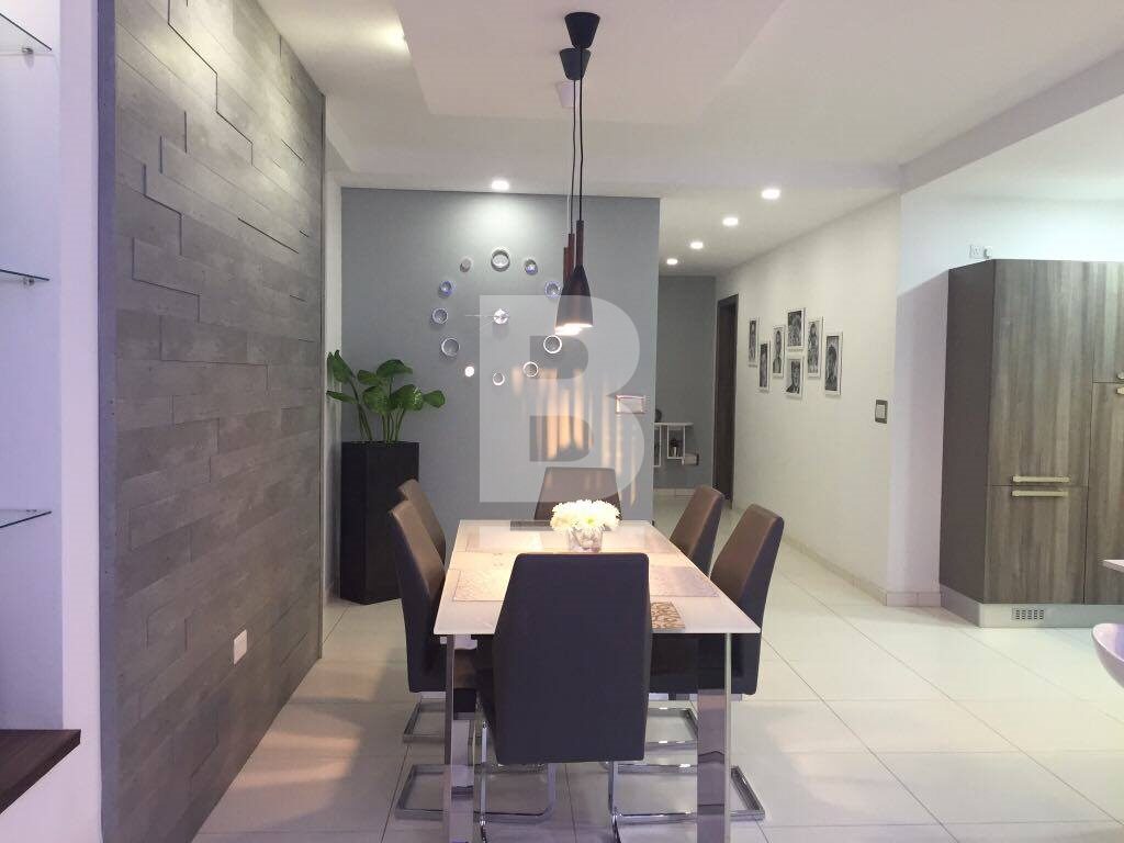 Highly finished, modern and fully furnished first floor apartment situated within walking distance to all amenities and to St Thomas beach. Property comprises an open plan kitchen / dining / living area leading on to a spacious terrace with outdoor furniture, three double bedrooms (main with en-suite shower room), main bathroom , laundry room and second front balcony . Fully equipped with air-conditioning units and includes TV, internet Wi-Fi, android box, washing machine, dishwasher, lift and intercom. Viewing is highly recommended!