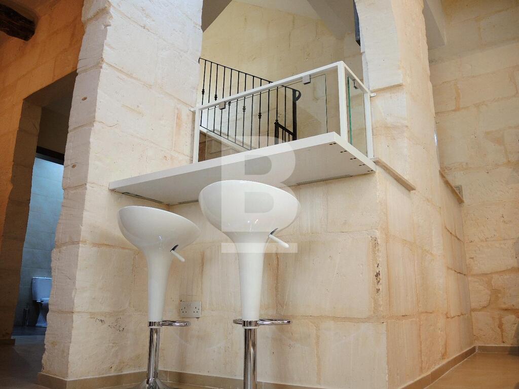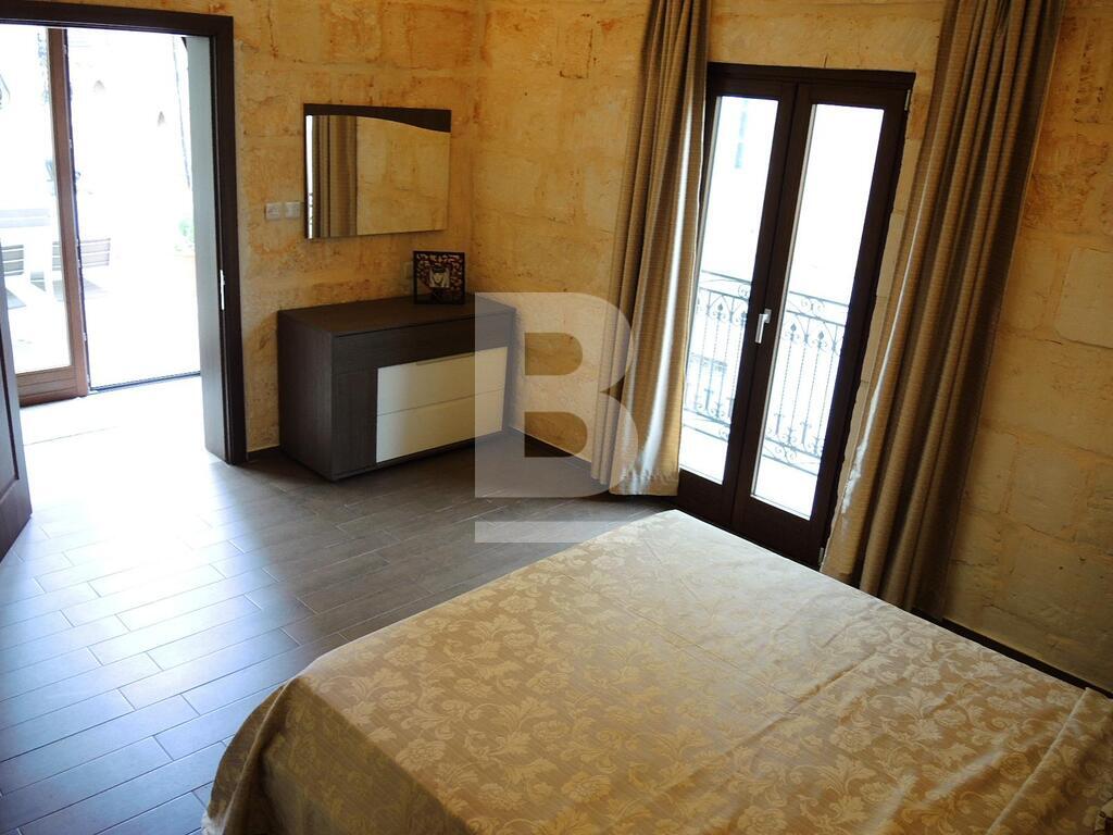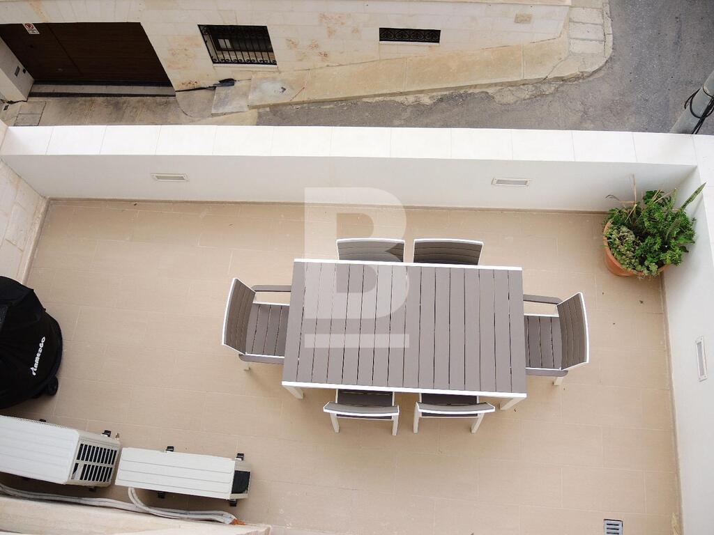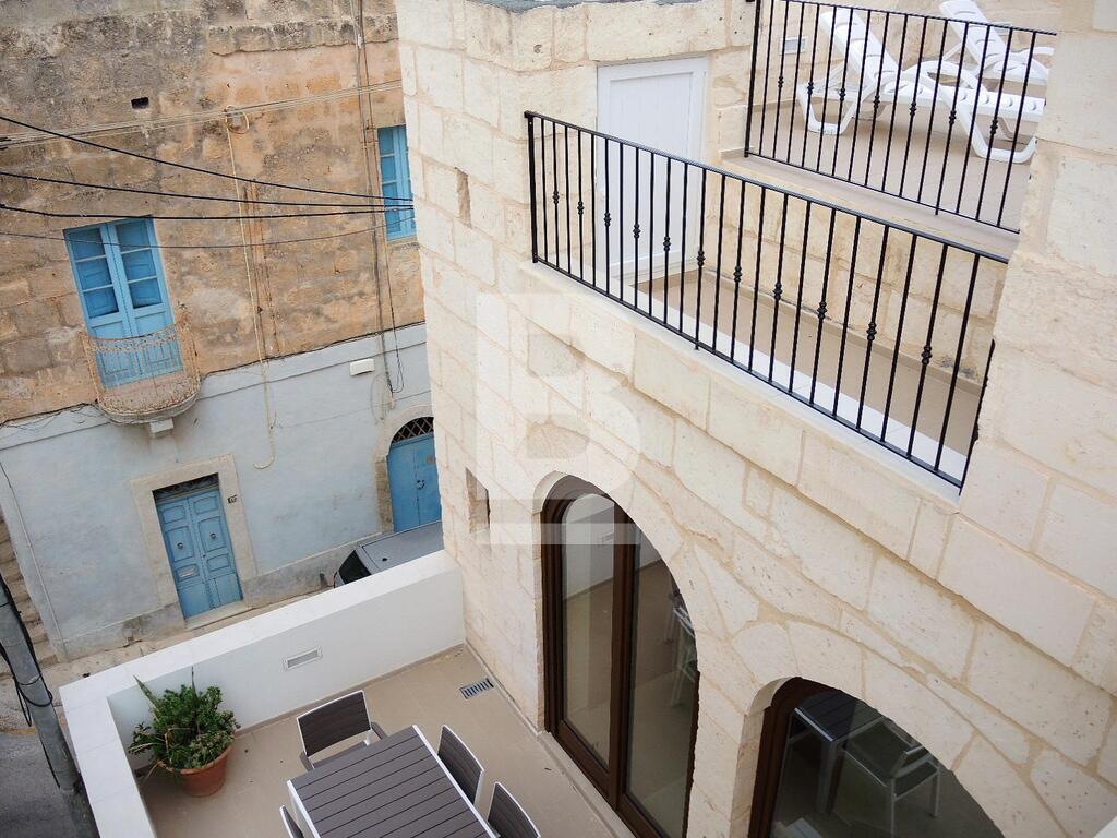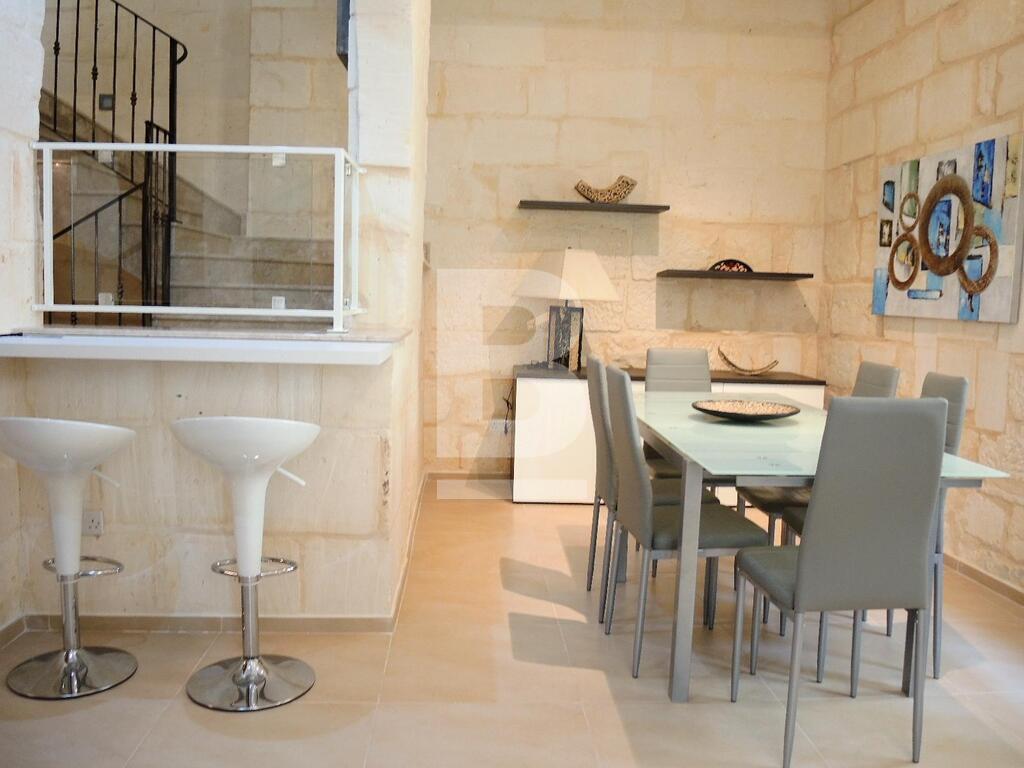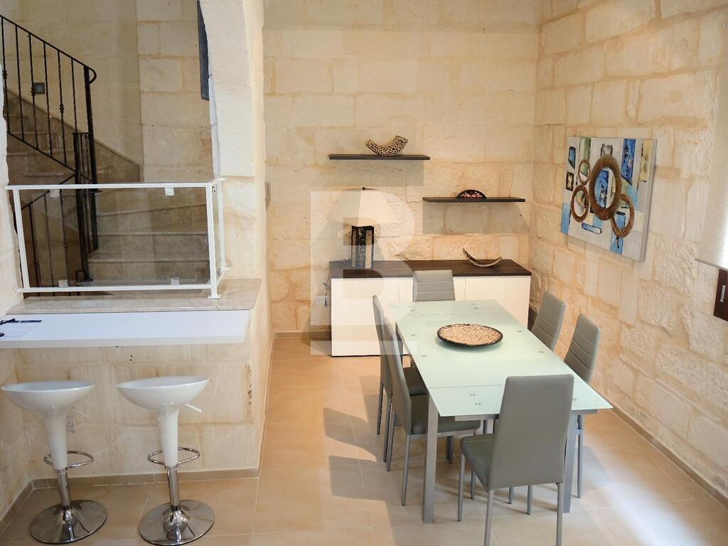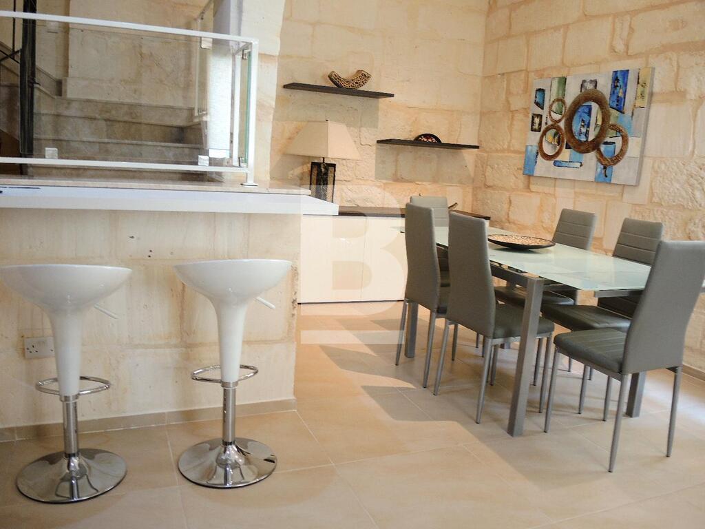 An extremely well converted House of Character in a central part of Mellieha village. This property is furnished to very high standards with layout, on the ground floor, comprising of a nice living room area with a comfortable sofa and led TV, a dining area, a fitted kitchen and a guest bathroom. On the first floor one finds one single bedroom, a double bedroom with en-suite and a lovely and spacious terrace with outdoor furniture and a BBQ. At roof level one finds another double bedroom with en-suite and two terraces perfect for entertaining. This property is fully equipped with air-conditioning units, double-glazing windows, washing machine and all modern appliances. A truly unique and lovely property!