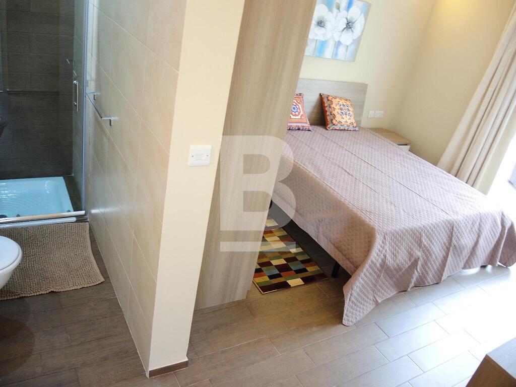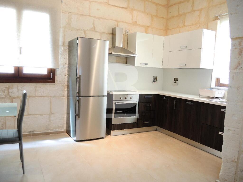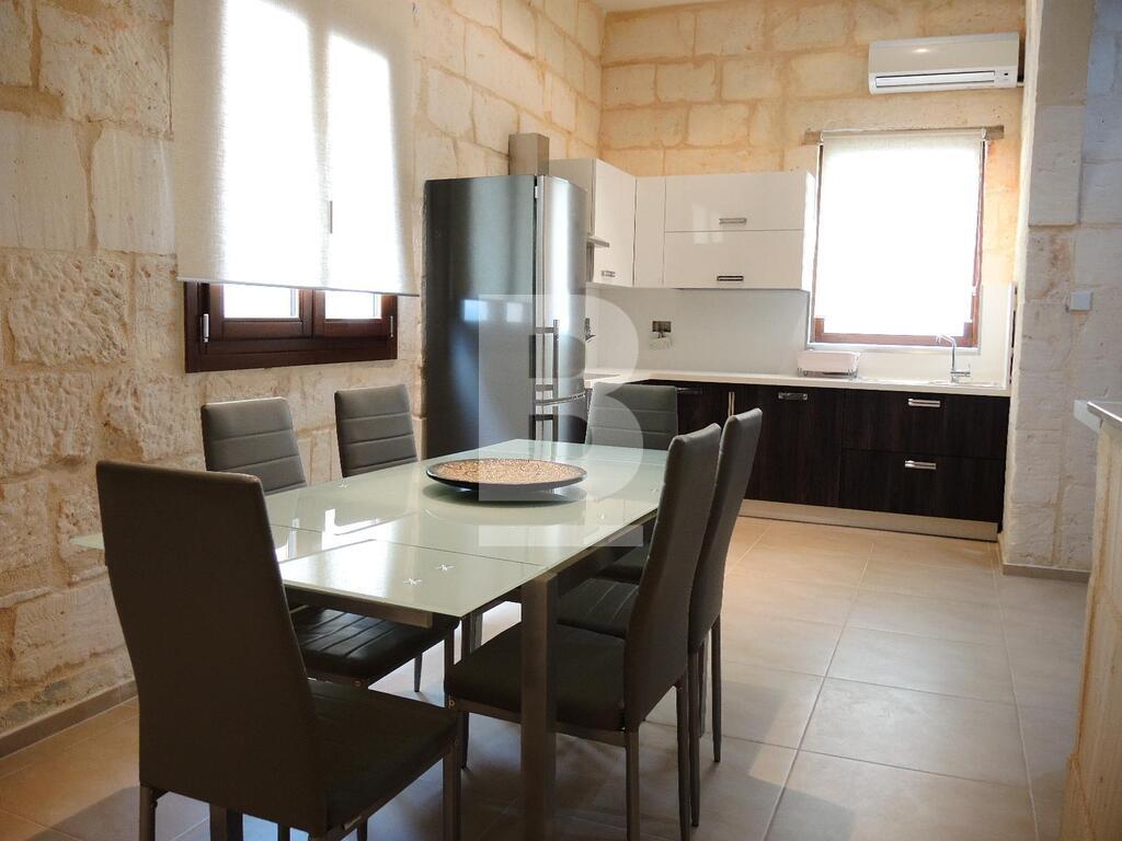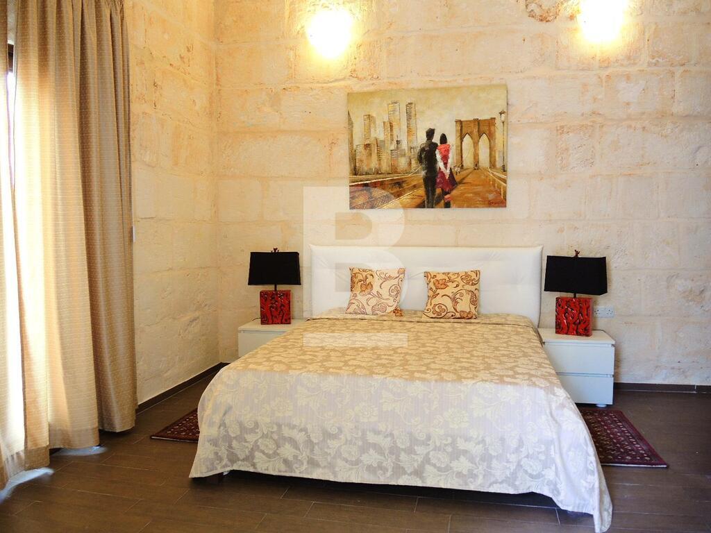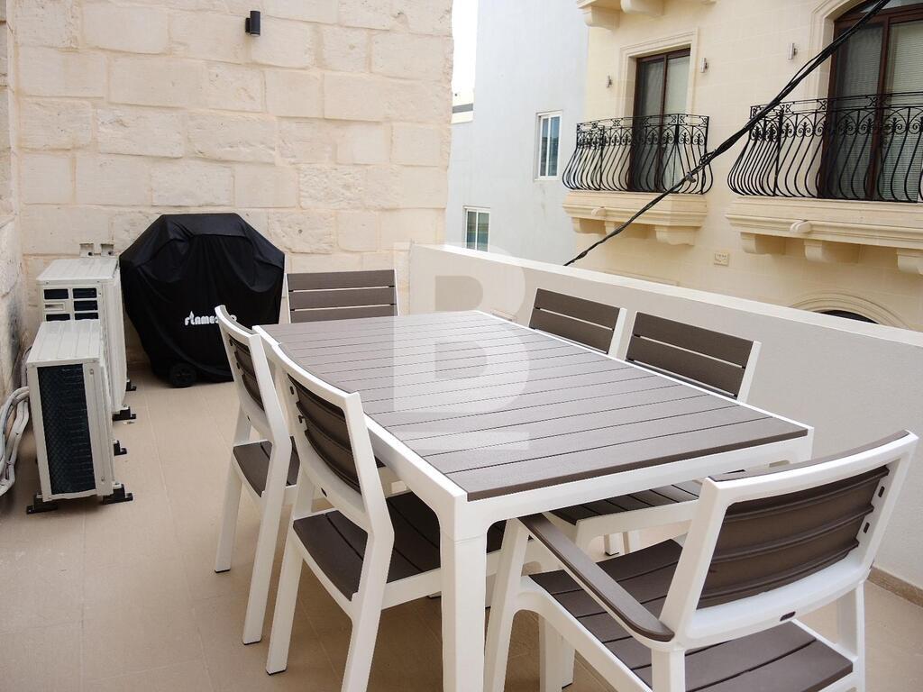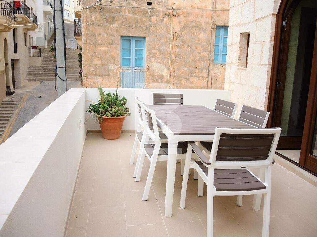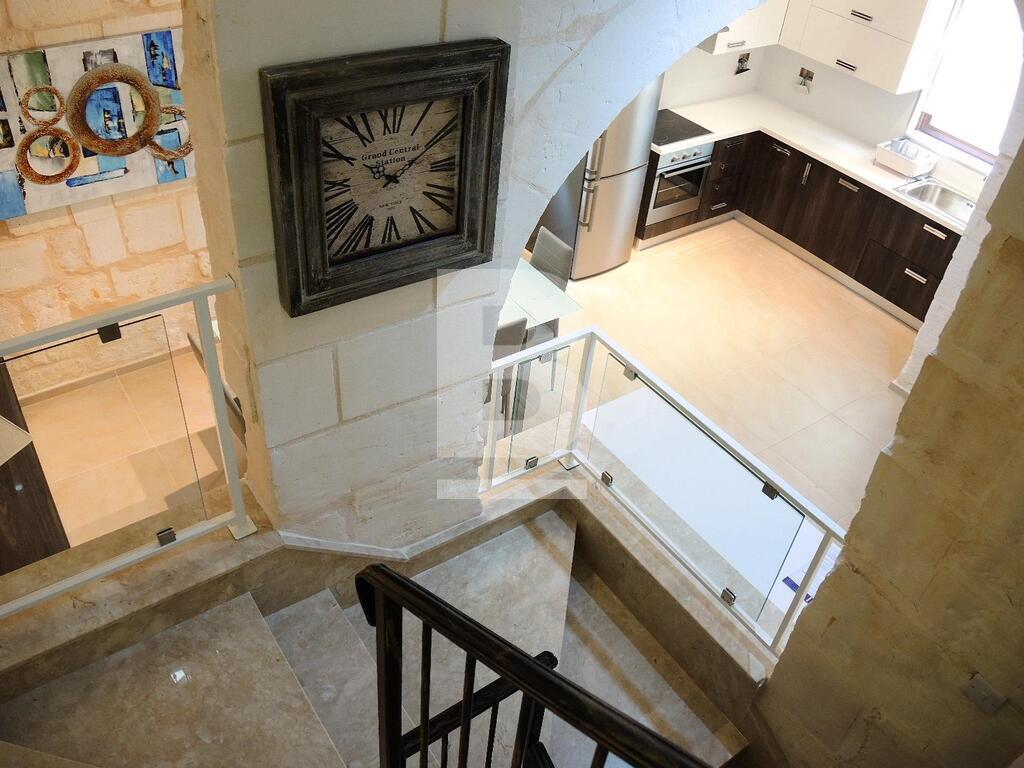 An extremely well converted House of Character in a central part of Mellieha village. This property is furnished to very high standards with layout, on the ground floor, comprising of a nice living room area with a comfortable sofa and led TV, a dining area, a fitted kitchen and a guest bathroom. On the first floor one finds one single bedroom, a double bedroom with en-suite and a lovely and spacious terrace with outdoor furniture and a BBQ. At roof level one finds another double bedroom with en-suite and two terraces perfect for entertaining. This property is fully equipped with air-conditioning units, double-glazing windows, washing machine and all modern appliances. A truly unique and lovely property!