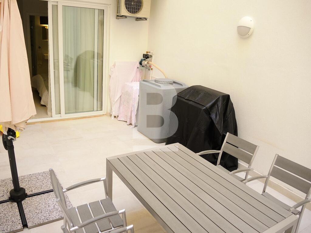 A modern, highly finished and fully furnished measuring 47sqm internal and 23sqm external apartment situated close to the Promenade and all amenities. Property consists of open plan fully equipped kitchen / living / dining area leading to a balcony enjoying lovely sea views, one double bedroom and bathroom. Equipped with flat screen TV, washing machine and air-conditioning units. A good sized back yard including outdoor furniture and a BBQ complements this property.