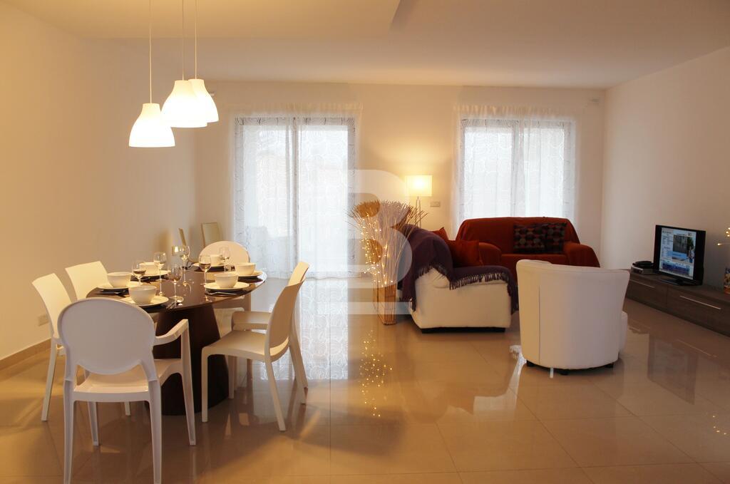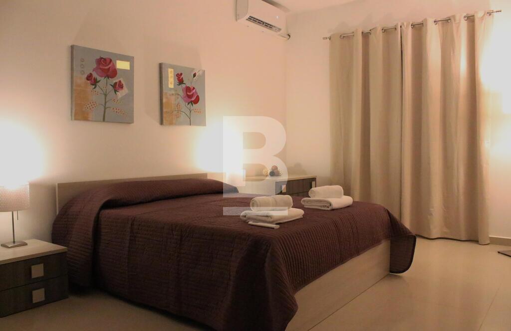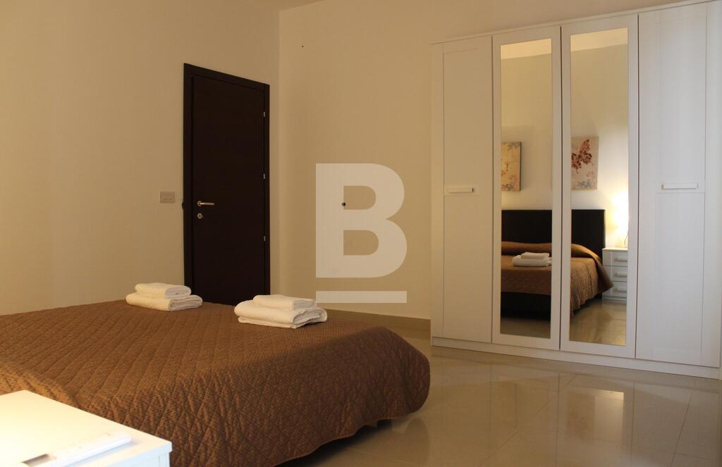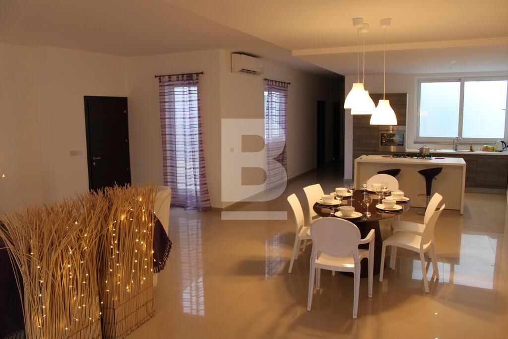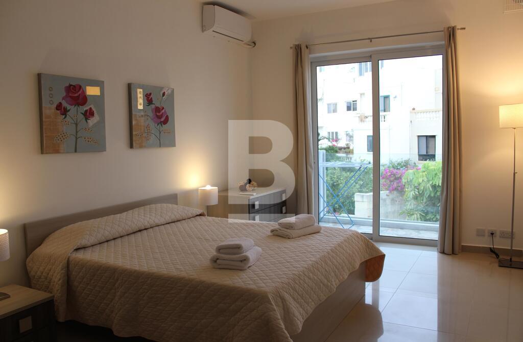 A stunning and luxurious 3 bedroom apartment in one of the most desirable locations in Malta. Spacious layout with stylish interiors and modern fittings make you feel at home as soon as you walk through the door. An enormous open plan living area with a large kitchen and comfortable sofa. The large bathroom with separate walk in shower, bath tub, wash hand basin and guest toilet in contemporary design makes this property the epitome of luxury and style. The apartment has also a utility room, en-suite bathroom, a 9mtr long back balcony and a 12 sqm front terrace. The apartment is fully equipped with air-conditioning units .The apartment is less than 5 minutes walk from a blue flag sandy beach, cinema complex, shopping centre and entertainment areas. Public transport is available 30mtrs away from the apartment and bus station less than 5 minutes walk with routes covering most of the island.