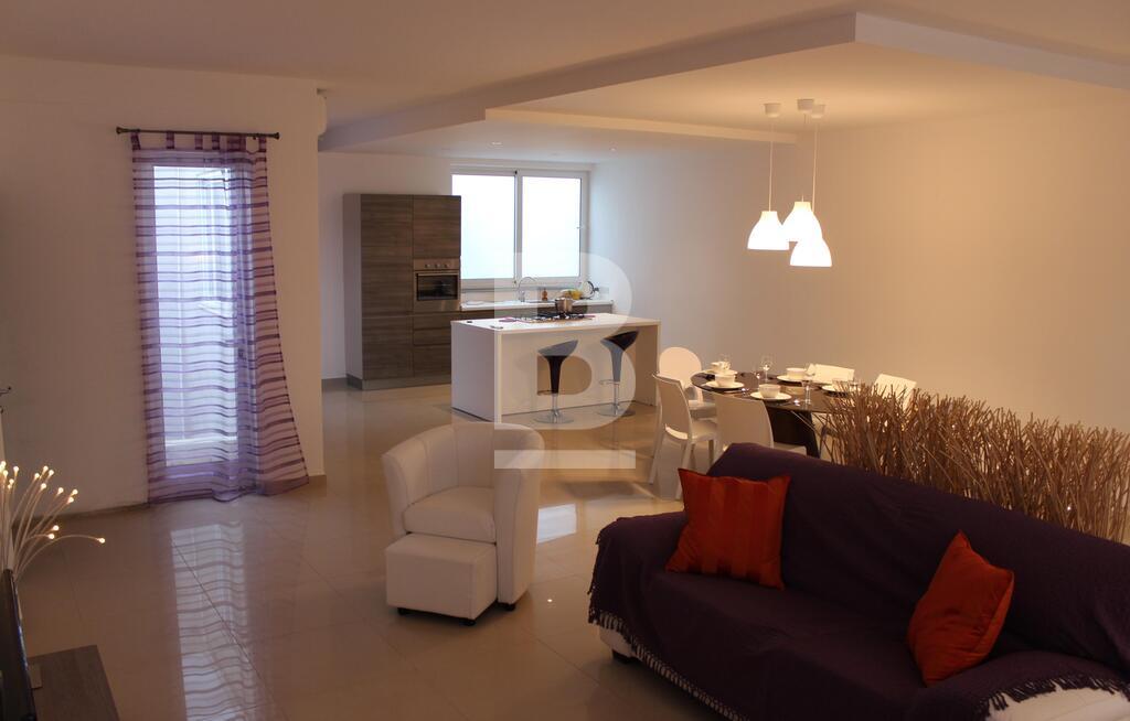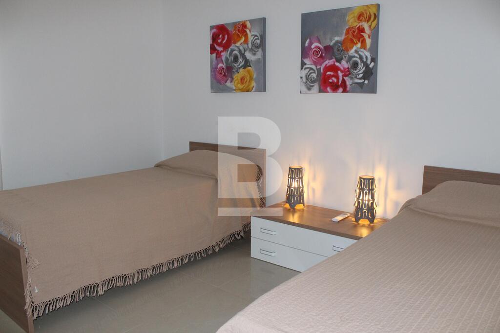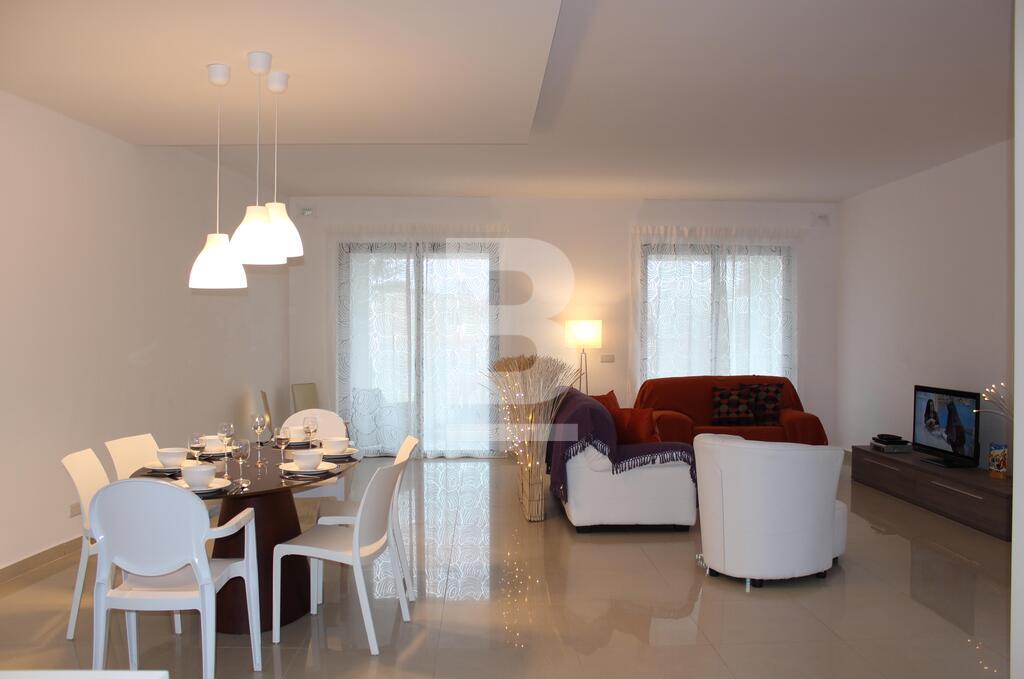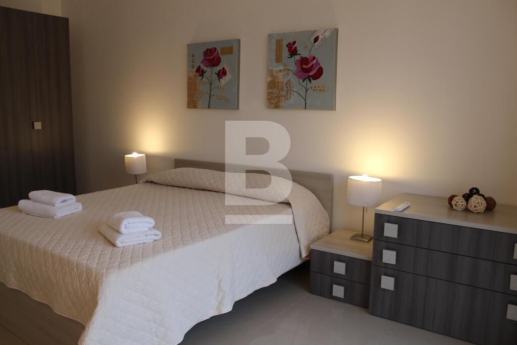 A stunning and luxurious 3 bedroom apartment in one of the most desirable locations in Malta. Spacious layout with stylish interiors and modern fittings make you feel at home as soon as you walk through the door. An enormous open plan living area with a large kitchen and comfortable sofa. The large bathroom with separate walk in shower, bath tub, wash hand basin and guest toilet in contemporary design makes this property the epitome of luxury and style. The apartment has also a utility room, en-suite bathroom, a 9mtr long back balcony and a 12 sqm front terrace. The apartment is fully equipped with air-conditioning units .The apartment is less than 5 minutes walk from a blue flag sandy beach, cinema complex, shopping centre and entertainment areas. Public transport is available 30mtrs away from the apartment and bus station less than 5 minutes walk with routes covering most of the island.