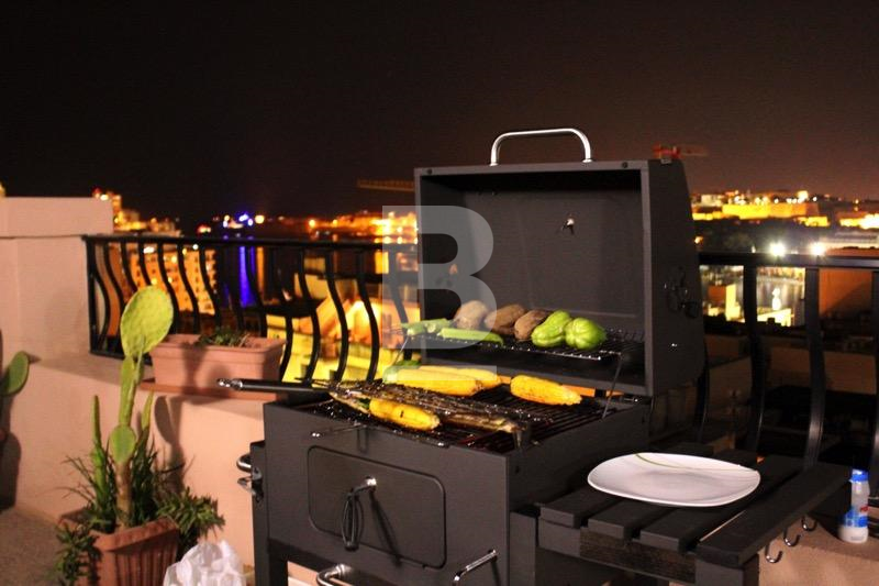 Two bedroom penthouse, stylishly furnished and centrally located close to all amenities. Accommodation comprises kitchenette with combined living and dining area, two bedrooms and two bathrooms. Fully equipped with air-conditioning units and includes washing machine, hair dryer and microwave. Additions include XXL TV as well as surround sound system, pad coffee machine and all modern appliances. The terrace enjoys fantastic views of Valletta and is equipped with outdoor furniture and BBQ.