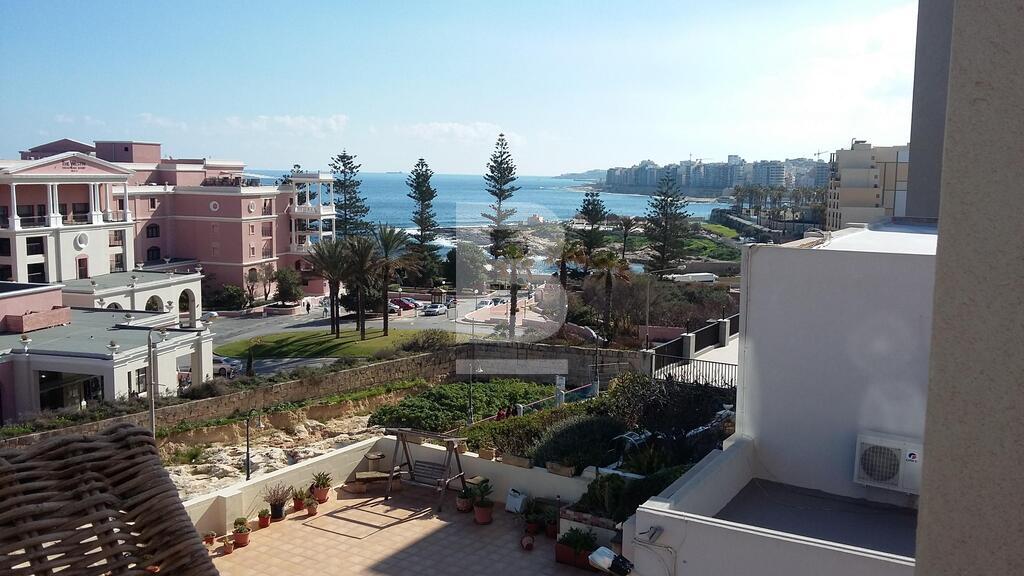 A bright corner apartment on the 3rd floor of 168 sq. mtrs overlooking the Westin Dragonara, St George’s Bay and the Sliema foreshore extending to the entrance of the Grand Harbour. Outstanding views from all windows. Comprising a large open plan living /dining room, kitchen with Carrara marble top and breakfast station, brand new fridge and dishwasher. Accommodation comprises 3 bedrooms (master with en-suite bathroom), 1 Jet shower / toilet and is equipped with air-conditioning units throughout. A 5 min walk to the Malta Hilton, St Julian's bay and restaurants. Private Parking, 24 X 7 security service, lift to all floors, resident cleaners for main area and daily refuse collection. One has to be on site to appreciate its location and sense of space.