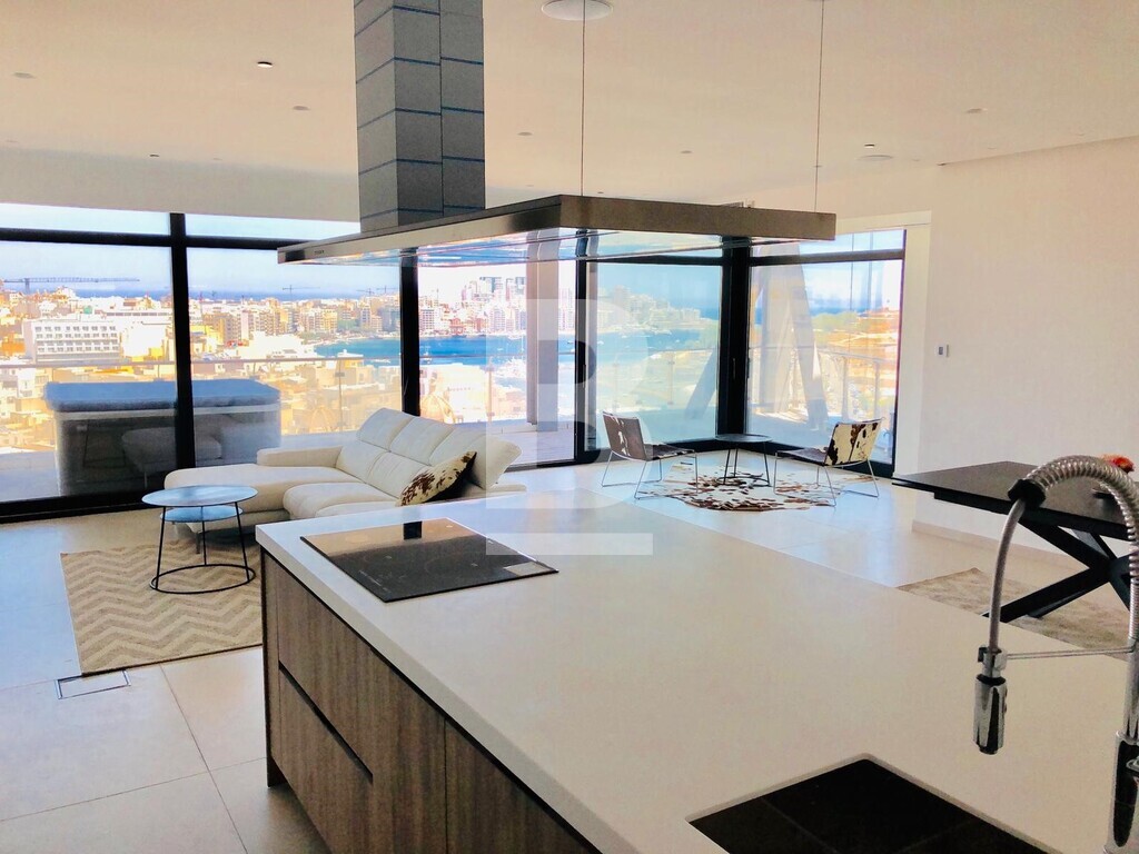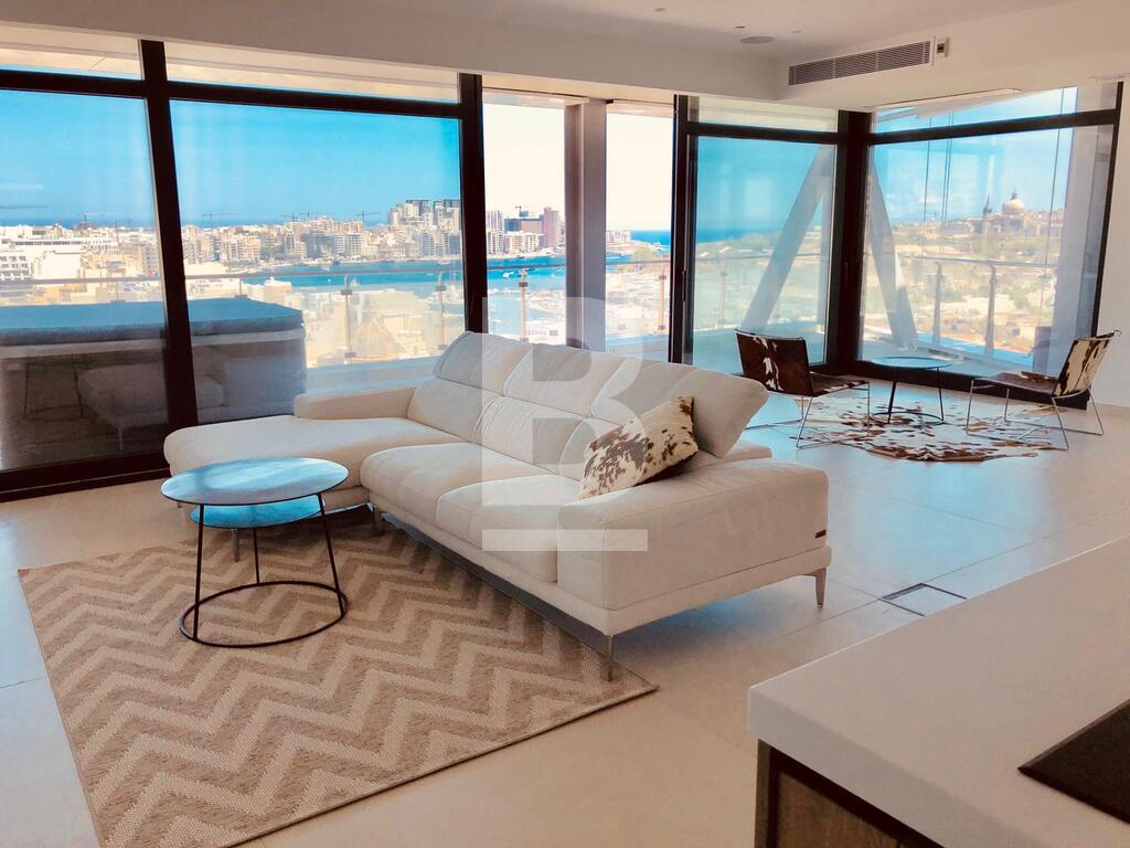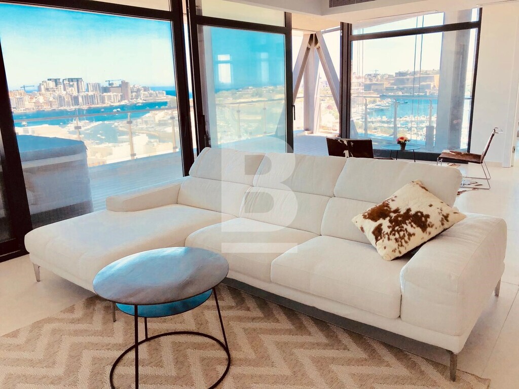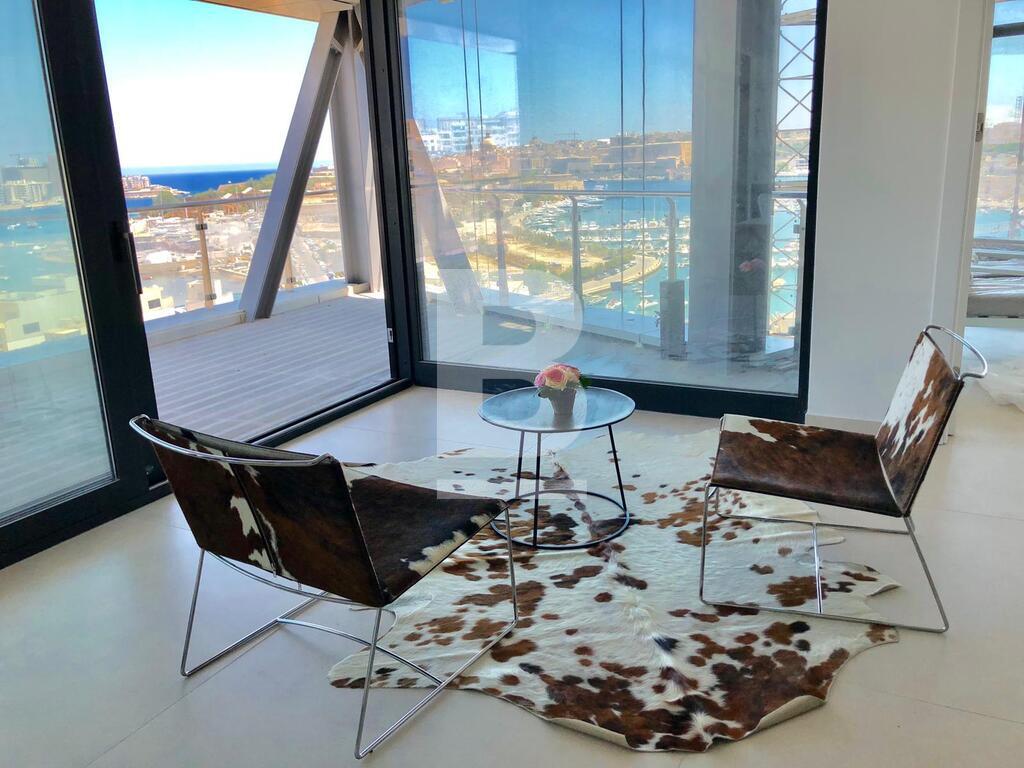 State of the art apartment, forming part of a Mixed-Use Tower, overlooking the Marina, historical Manoel Island and the Harbour. This particular unit, is set on the 11th floor, enjoying 274sqm of living space, split 174sqm internally and 100sqm of surrounding external terraces. All rooms enjoying a sense of natural light and air and magnificent views. Comprising of an entrance hall, large open plan sitting / dining / kitchen leading to a spacious terrace, three double bedrooms all enjoying ensuite facilities, main also enjoying a walk-in-wardrobe, guest bathroom and storage room. Being sold fully finished, including a fully functional kitchen, high quality bathrooms, internal doors, VRV airconditioning, under floor heating, besides others. Further complementing this apartment is an interconnecting car space. Must be seen to be truly appreciated!! FREEHOLD